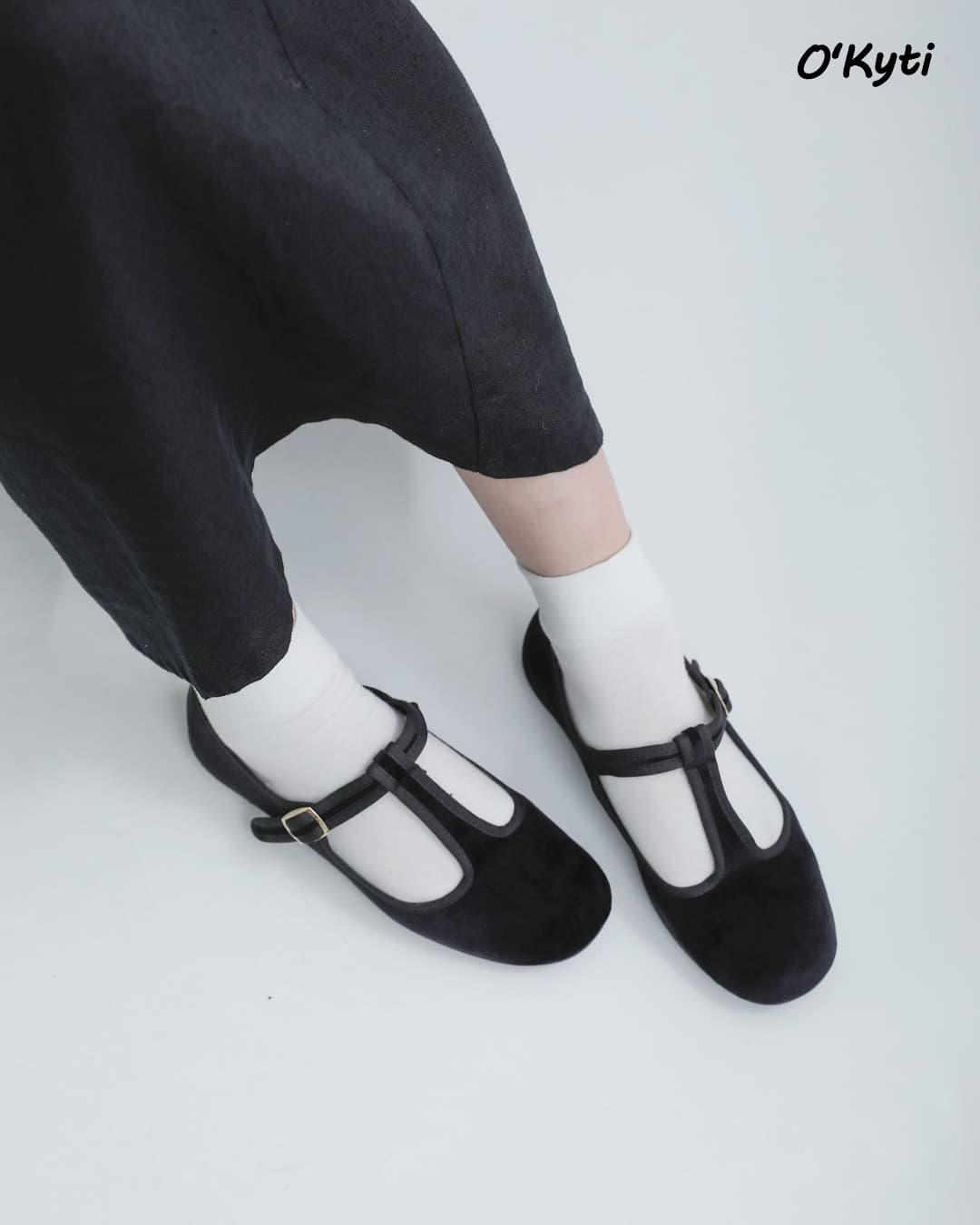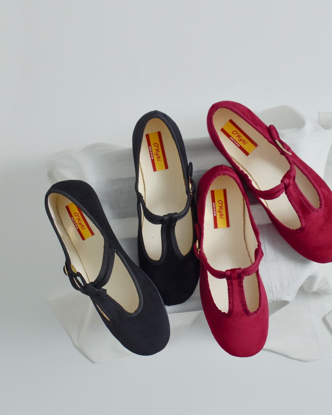 Tベルトフラットメリージェーン綺麗めカジュアル歩きやすいラウンドトゥベロア光沢シューズ O’KYTI オキティ Tベルト フラット メリージェーンシューズ 6700 レディース 2026ss新作 春夏【サイズ交換初回無料】