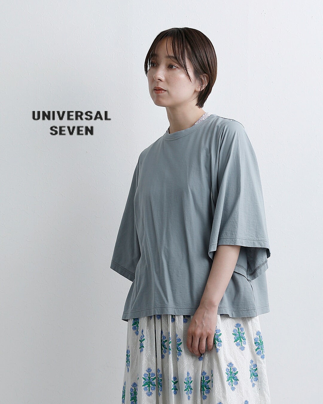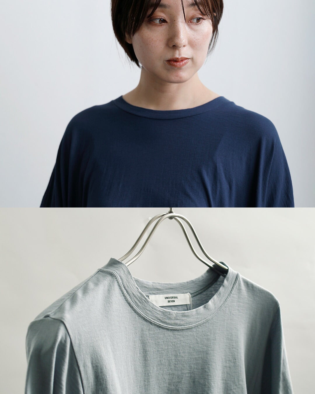 ひんやり涼しい接触冷感素材のワイド袖ドロップショルダーカジュアルもきれいめも合わせやすいTシャツ universal seven ユニヴァーサルセブン COOL強撚天竺 BIGスリーブ Tシャツ us252ct026 レディース 2026ss新作 春夏