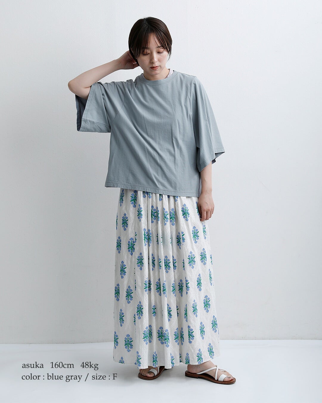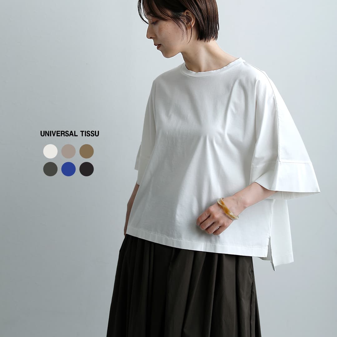 接触冷感機能を持つコンパクトクールローレル天竺を使用ひんやりとした着心地上品な表情を兼ね備えたワイドTシャツ universal tissu ユニヴァーサルティシュ コンパクトクールローレル天竺 ドルマンスリーブ ワイド Tシャツ ut261ct019 レディース 2026ss新作 春夏