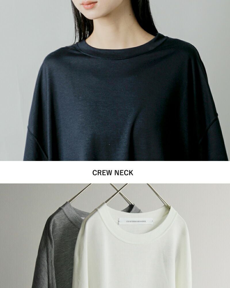 適度な開きでお顔周りがすっきりと見えるクルーネック。
