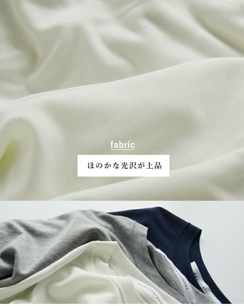 素材には、リヨセルに特殊加工を施した生地を使用。ソフトでなめらかなタッチと、しなやかなハリ感を両立させた新しい質感です。控えめな光沢と適度なハリが、静かな存在感を感じさせます。涼しく、しわになりにくいイージーケアなのも魅力です。