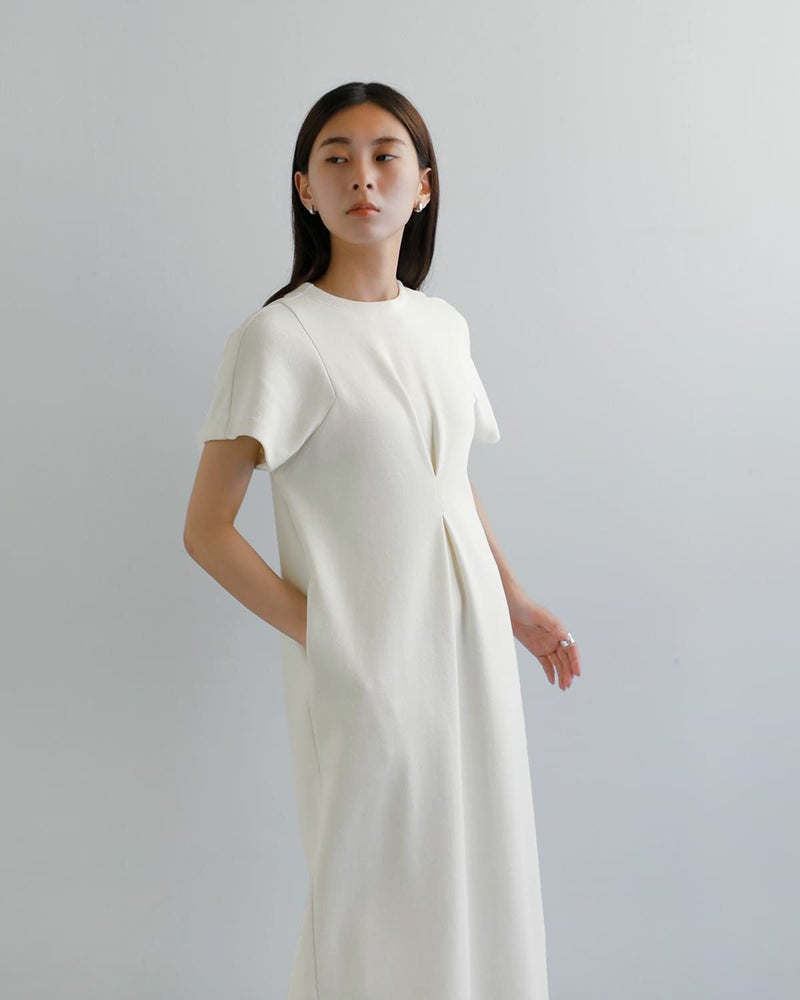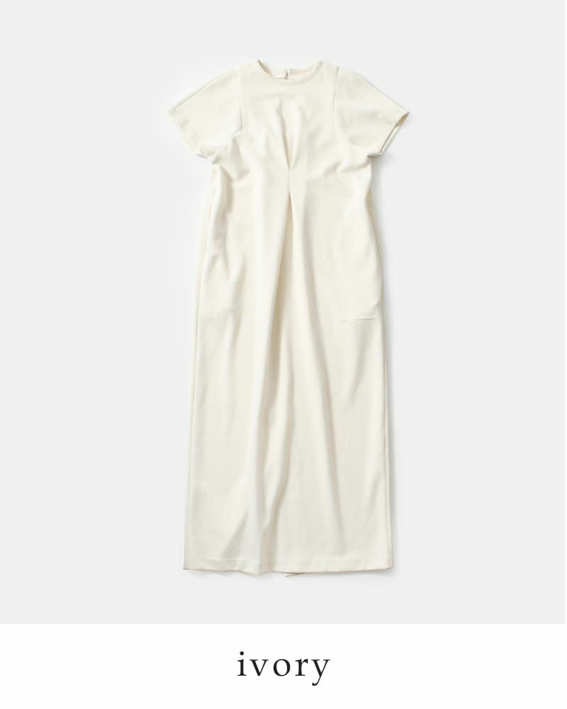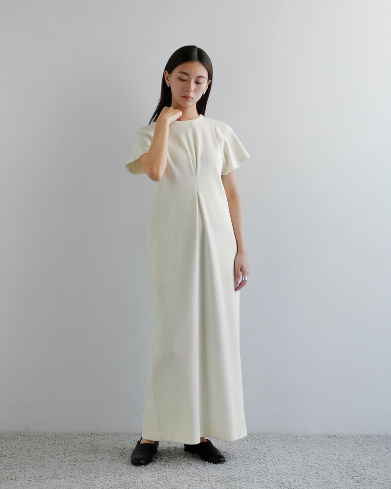 シンプルながら構築的なシルエットが印象的なワンピース。立体的なタック使いとやや深めのバック開きが、洗練された抜け感を演出。ドライタッチな表面感が特徴の素材で、真夏でも肌に張りつかず快適な着心地。肩や腕まわりを包むフレンチスリーブで、ノースリーブに抵抗のある方にもおすすめ。きちんと感とリラックス感を兼ね備え、オケージョンから普段使いまで対応可能です。