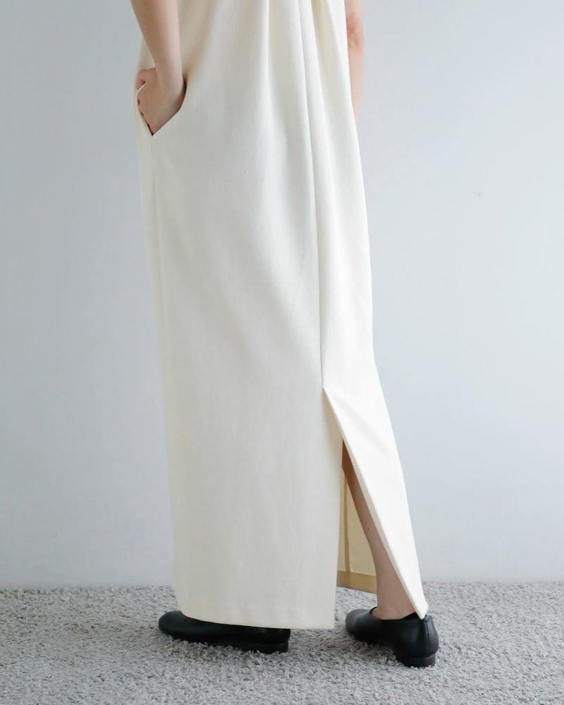 肩や腕まわりを包むフレンチスリーブで、ノースリーブに抵抗のある方にもおすすめ。両サイドにはポケット付き。