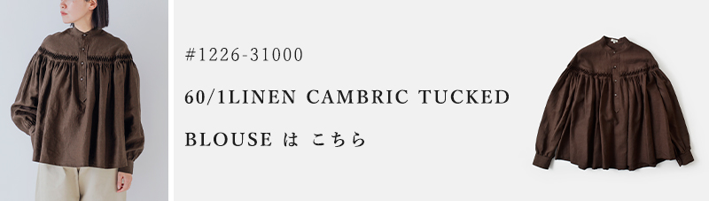 リネンキャンブリックタックハーフスリーブブラウス60/1LinenCambricTuckedBlouseHalfSleeve1226-31001