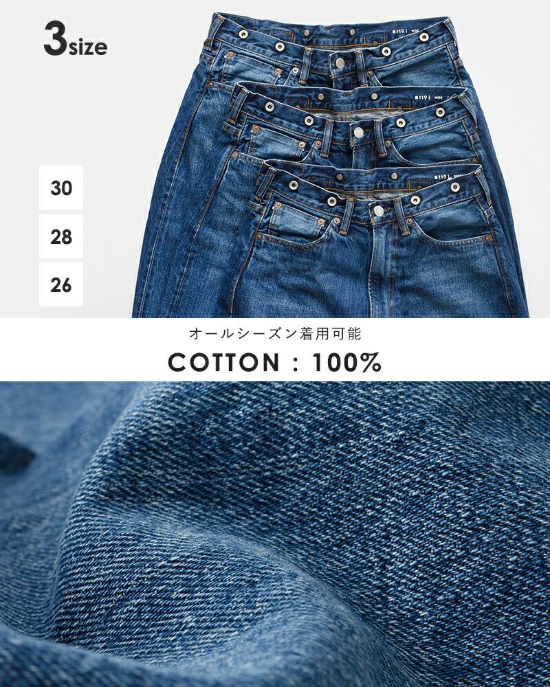 コットン ユーズド ワイド デニム パンツ TYPE WIDE 119usd-126