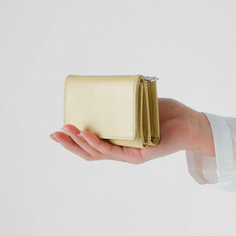 YAHKI(ヤーキ)より、スムースレザー コンパクト 三つ折り ウォレットのご紹介です。 無駄な装飾をなくしたシンプルなウォレット。小さいサイズ感ながら、機能性は抜群のアイテムです。手に馴染むコンパクトなサイズ感を追求したデザインなので、バッグの中でもかさ張らず、普段使いや小さいバッグで移動するパーティーシーンなどにもおすすめ。ブランドロゴが入った専用BOX付きなので、大切な人へのプレゼントにも最適なアイテムです。