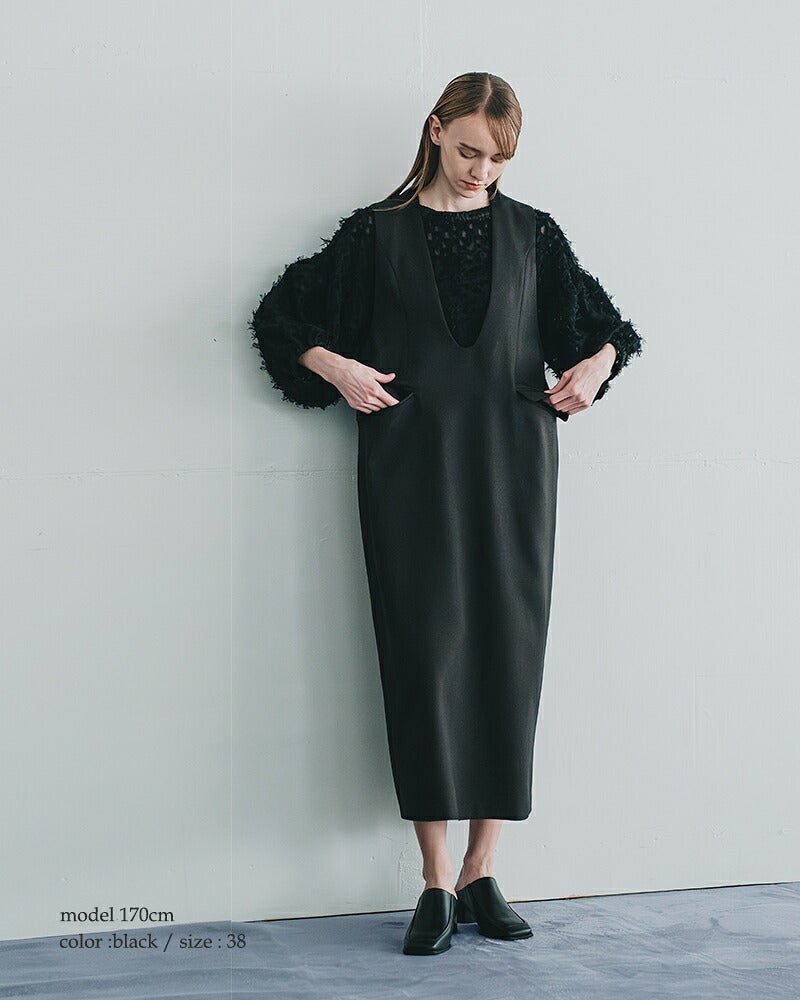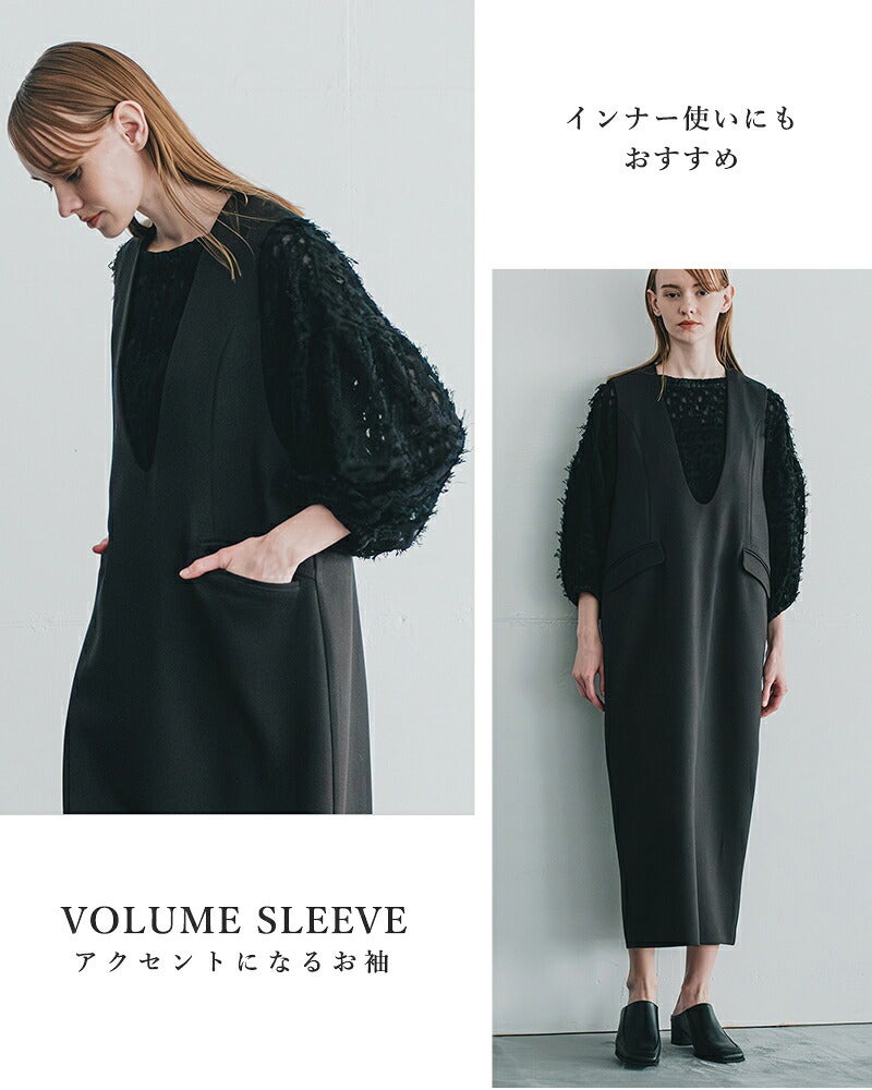 ワンピースのインナーとして合わせれば、ボリュームのある袖シルエットが引き立ち、レイヤードならではの奥行きあるスタイリングに。