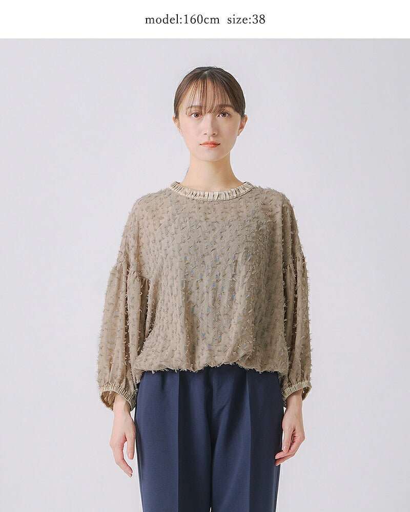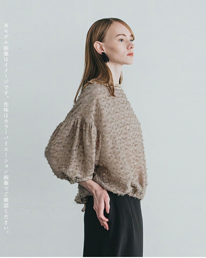 一枚で主役になる華やかさがありながら、パンツにもスカートにも合わせやすく、デイリーからきれいめシーンまで幅広く活躍するブラウスです。