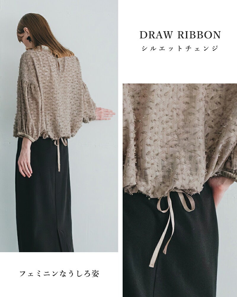 裾にはドローリボンを配し、絞り具合によってシルエットの調整が可能。