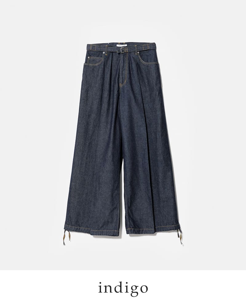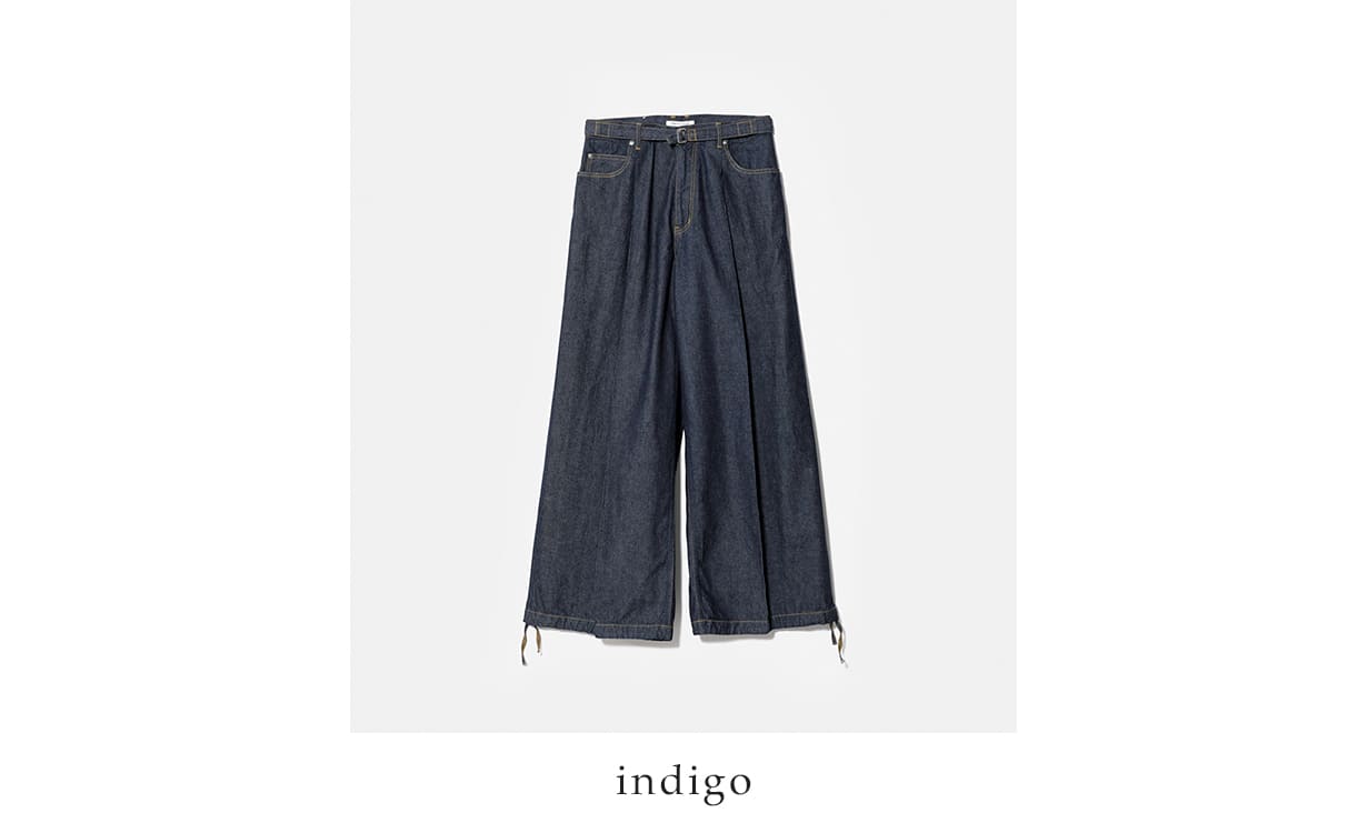 ややライトな10.5オンスのセルビッチデニムを使用した、ワンタック仕様のワイドパンツ。