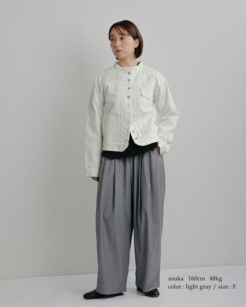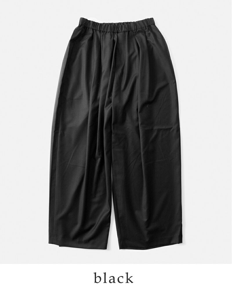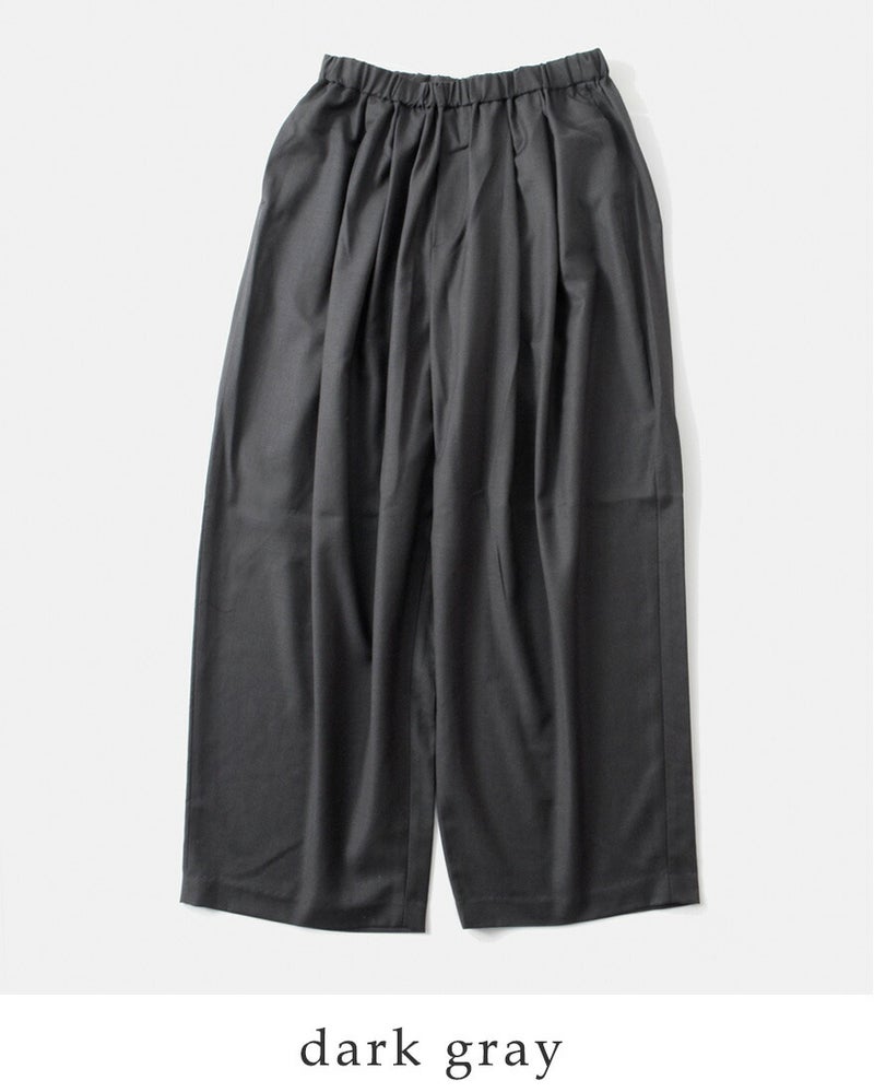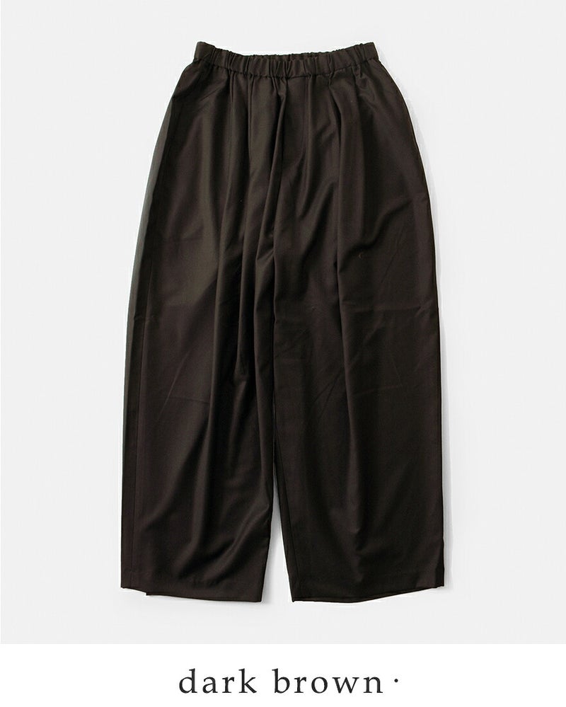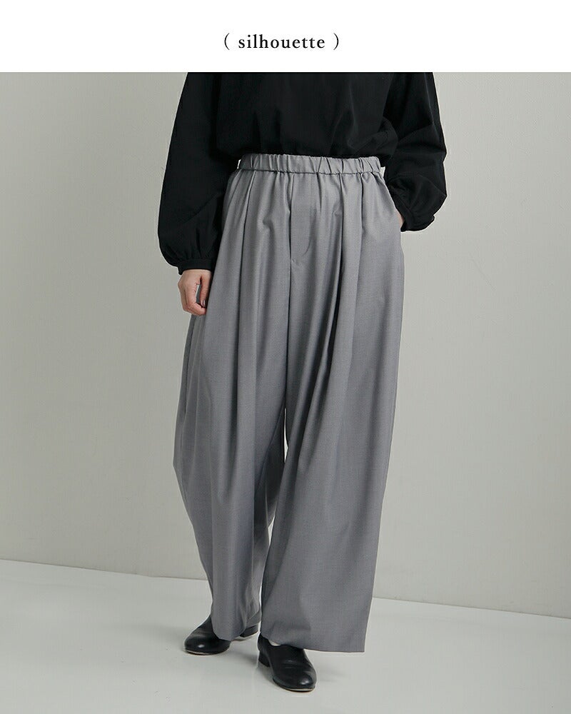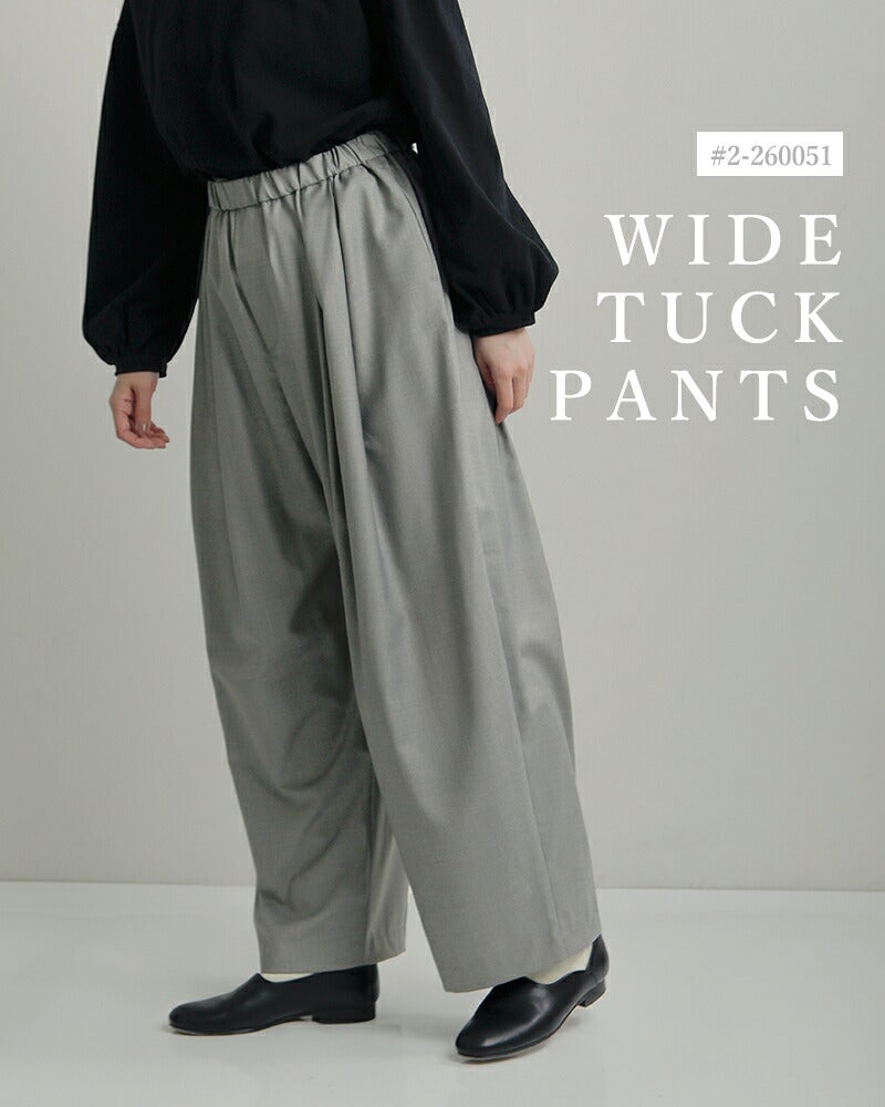 とろみとドレープ感が女性らしい印象のワイドタックパンツ