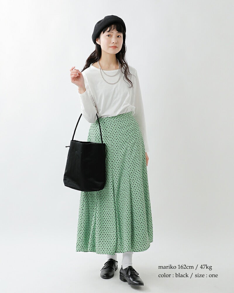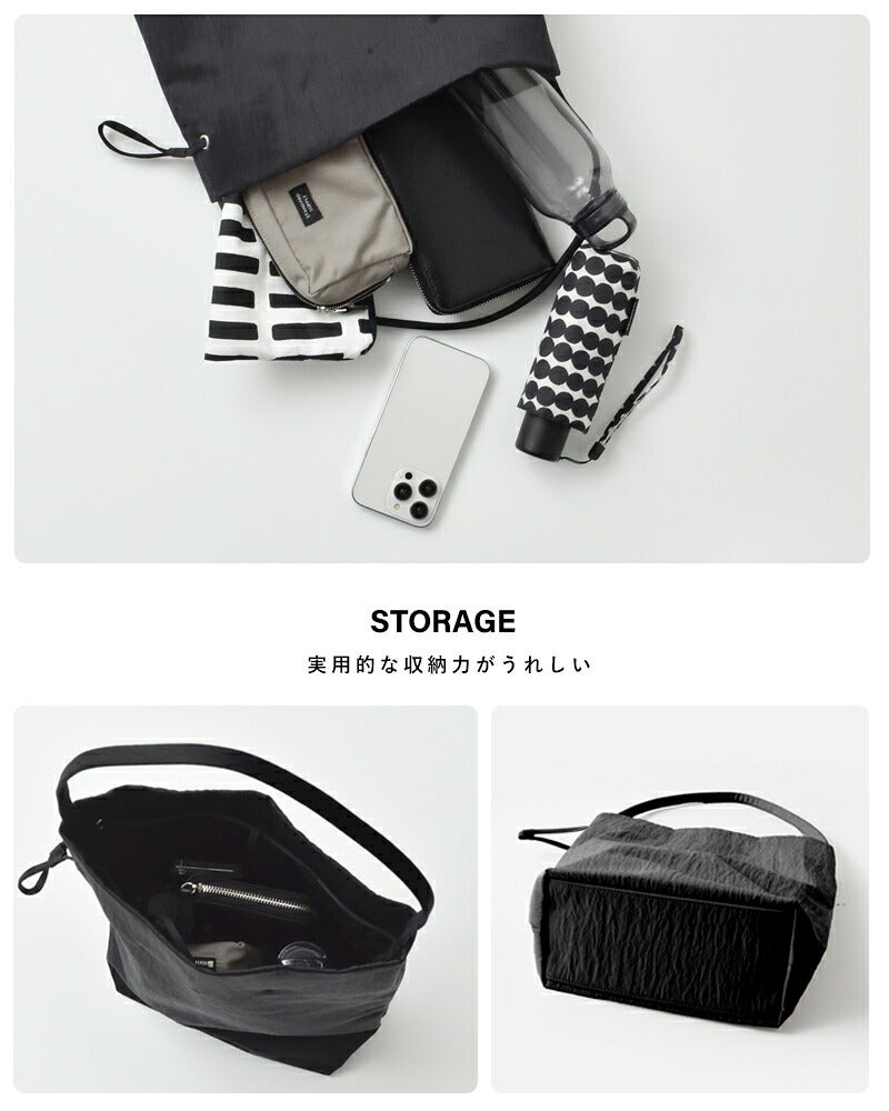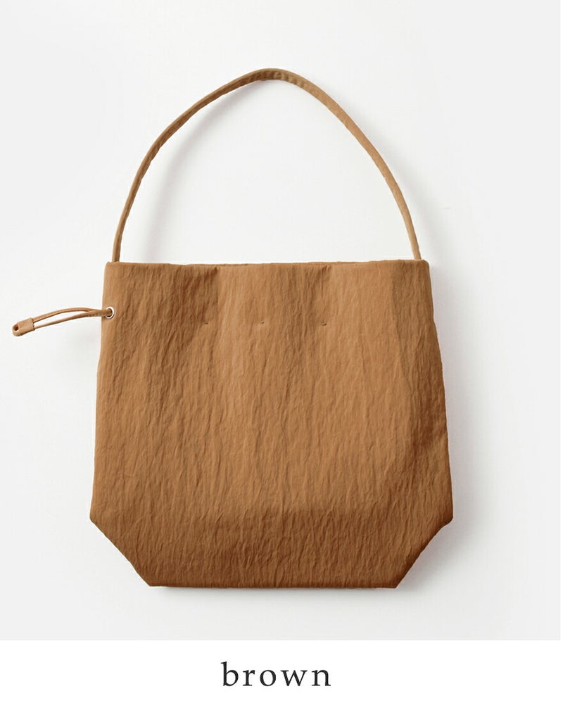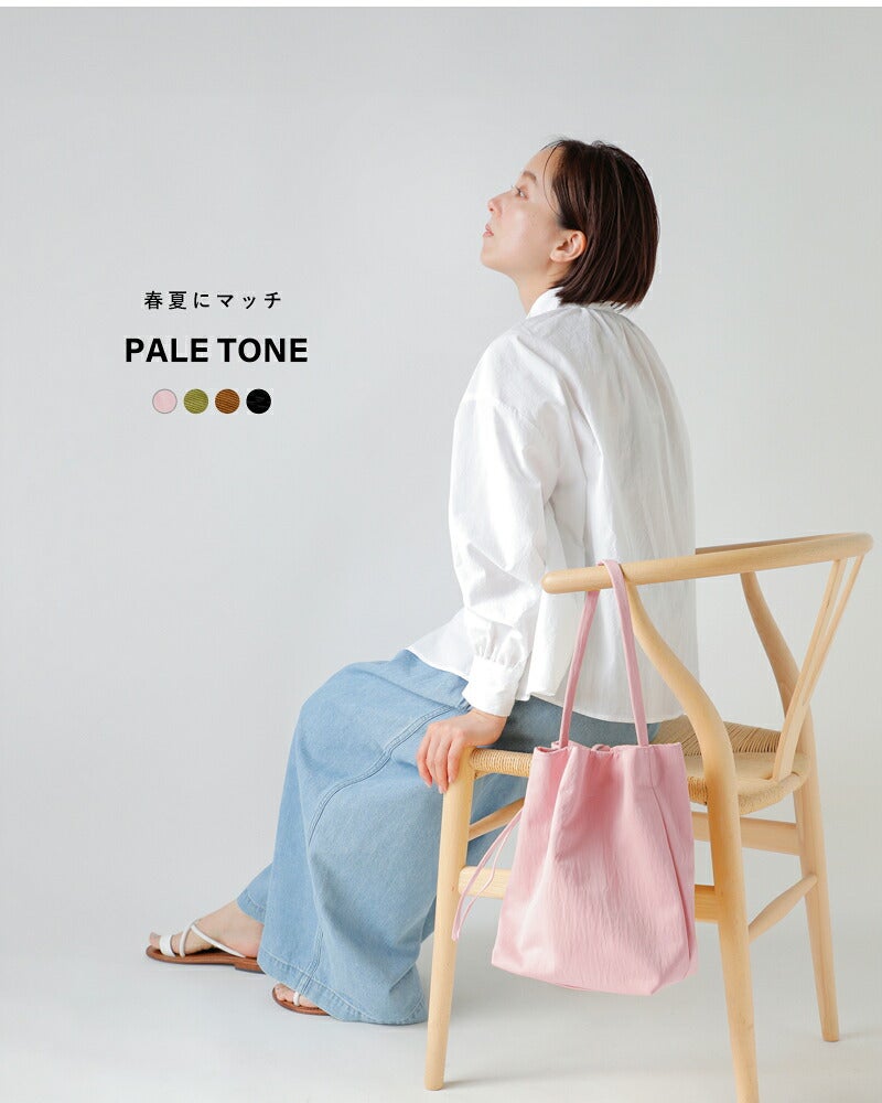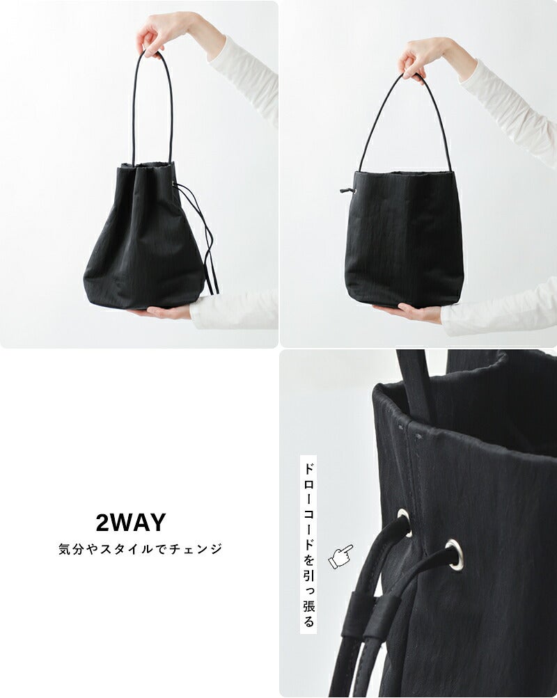 MARY AL TERNA(メアリオルターナ)より、リサイクルナイロンワンショルダー2wayトートバッグ“WRAPPING M”のご紹介です。ナイロン特有の光沢感を軽減させるために生地に塩縮加工を施したリサイクルナイロン100%の素材を使用したトートバッグ。巾着型の広い間口で必要なだけ開閉でき、荷物の出し入れも楽々。スタイルも2way仕様で様々なシーンでの活躍が楽しめます。しっかりとした生地なので通勤・通学にも安心。