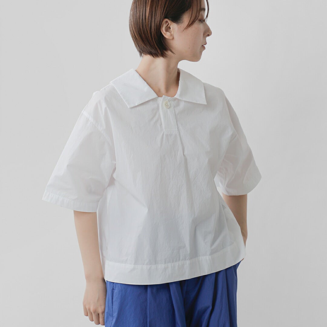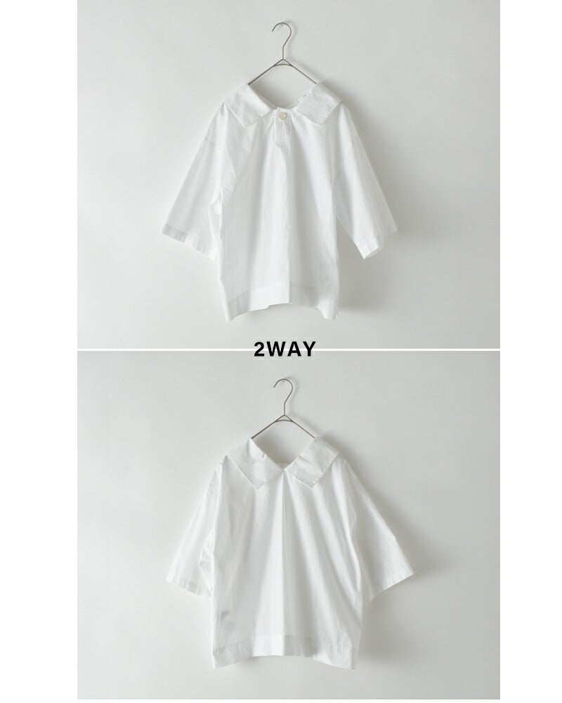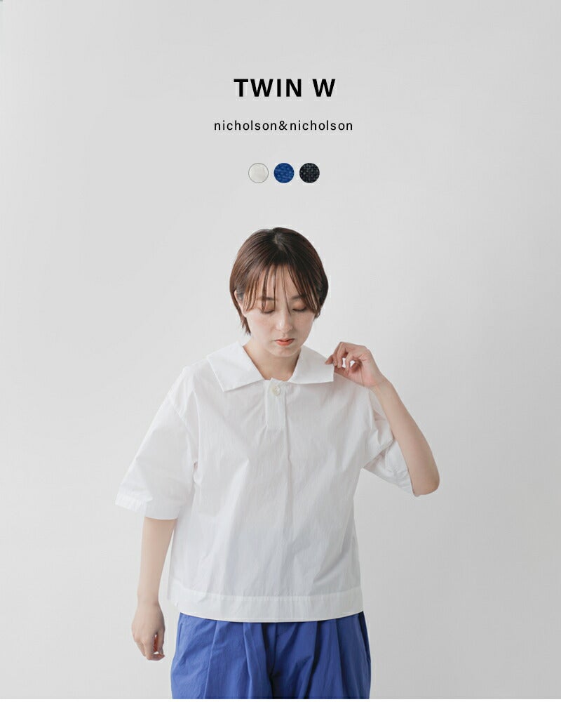 他の画像を見る 前後2WAY半袖薄手ドライタッチフラットカラー大きめ襟ブラウスシャツクロップド丈TWINWツインダブリュー 【クーポン対象】nicholson&nicholson ニコルソンアンドニコルソン ウォッシュドコットン 2way 半袖 シャツ プルオーバー “TWIN W” twin-wレディース 2026ss新作 春夏 ¥ 18,700 ¥ 18,700 税込 予約 クーポン対象 カートに入れる お気に入りに登録する