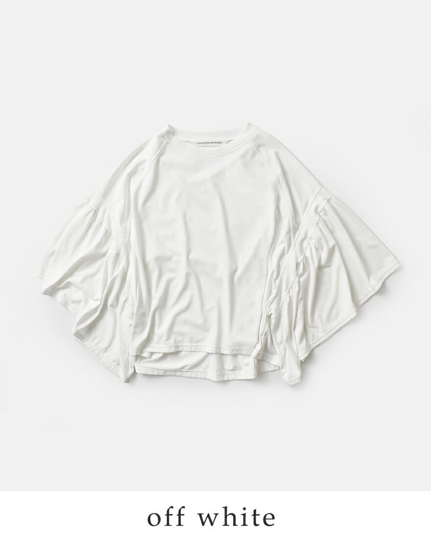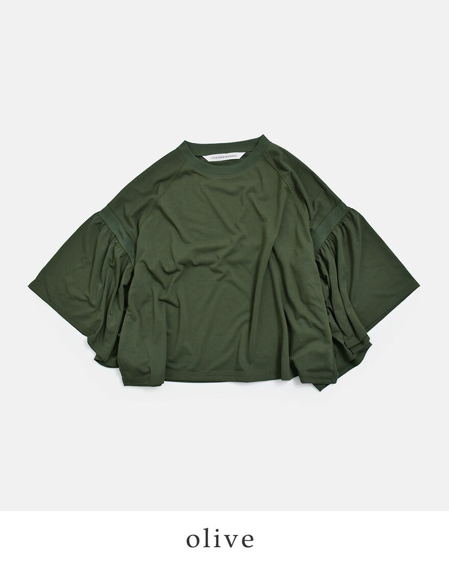 他の画像を見る ワイドなギャザースリーブと後ろ下がりのラインでフェミニンさにさりげないモード感を添えたジャージーショートTシャツ 【クーポン対象】COGTHEBIGSMOKE コグザビッグスモーク リサイクルPEジャージー ギャザースリーブ Tシャツ LAURA GATHERED SLV TOP 14102-346-1209-1 レディース 2026ss新作 春夏 ¥ 24,200 ¥ 24,200 税込 クーポン対象 カートに入れる お気に入りに登録する