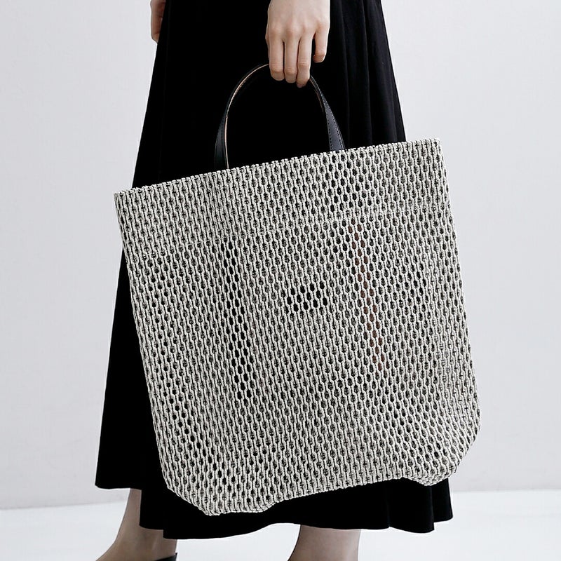 大容量をエレガントに持ち運ぶ、大人のメッシュトート。