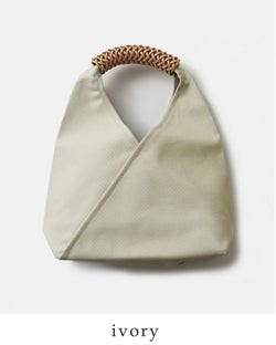 Kamaro'an(カマロアン)より、レザーハンドルトライアングルバッグのご紹介です。ハンドルのメッシュレザーは、台湾の先住民アミ族の伝統的織物の技術を用いて作られたぬくもりのあるデザイン。トライアングルの形に仕上げたコンパクトな大きさで、洗練されたモダンな装いをお楽しみいただけます。