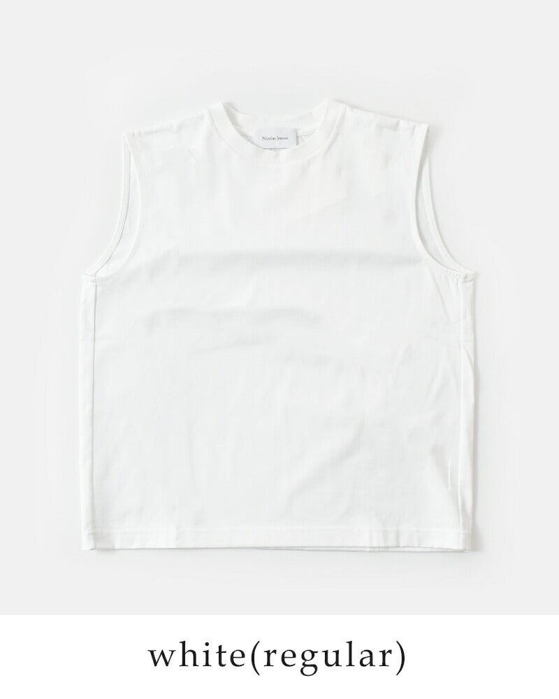 他の画像を見る シンプルで上品なノースリーブカットソー。選べるサイズと丈、万能デザイン。NicolasJenson二コラジェンソンコットンノースリーブカットソー“SLEEVELESS”【再入荷】 Nicolas Jenson ニコラジェンソン コットン ノースリーブ カットソー “SLEEVELESS” js-19ss-02-kk レディース 無地 ノースリーブカットソー シンプルトップス 日本製 きれいめカットソー オフィスカジュアル【再入荷】 ¥ 12,100 ¥ 12,100 税込 販売開始前 販売期間 2026/04/30 10:00 〜 SOLD OUT 詳細を見る お気に入りに登録する