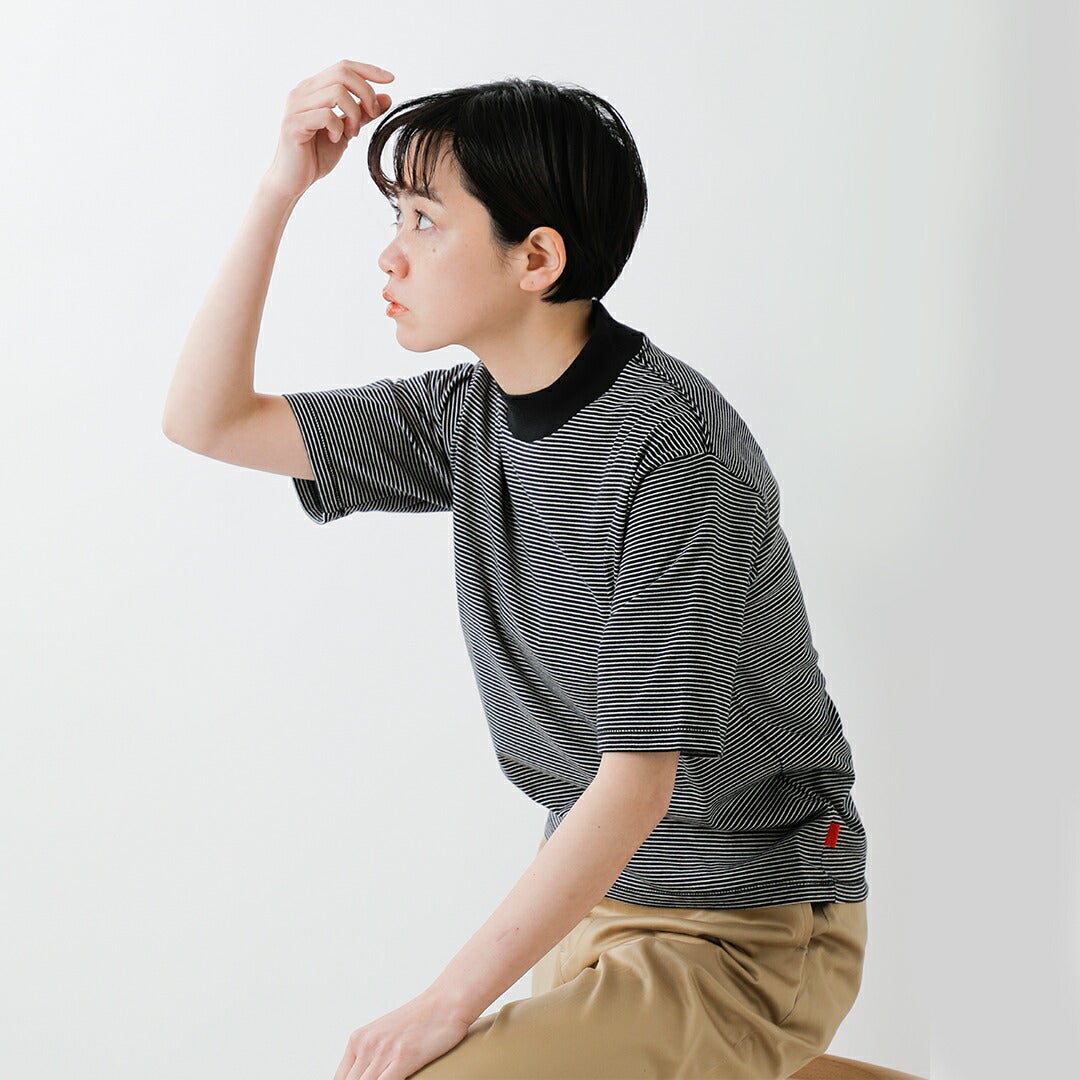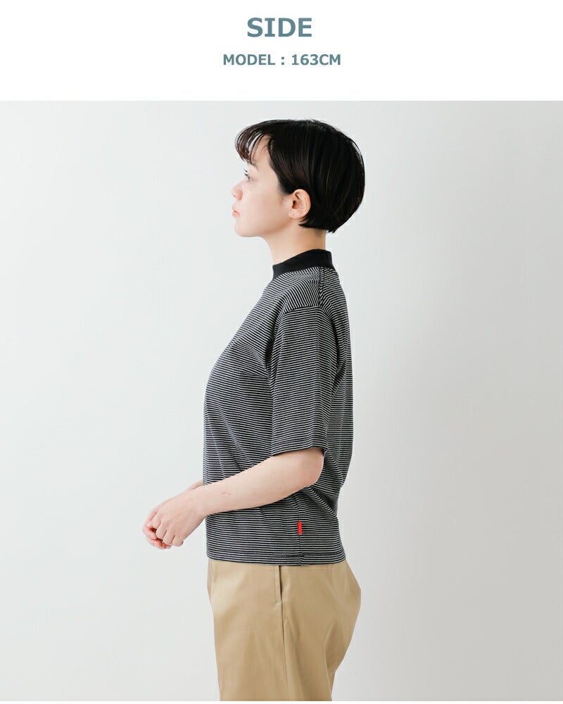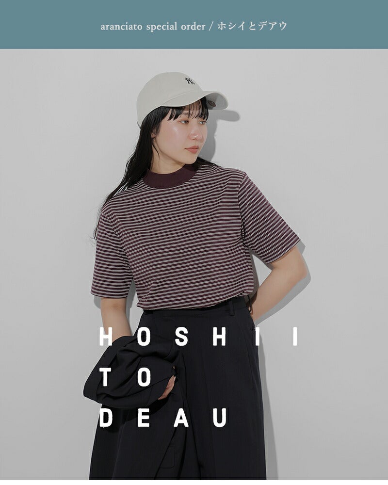 他の画像を見る ヘルスニットHealthknitのモックネックTシャツ。ボーダー半袖で何枚も欲しいカットソー。 【クーポン対象】HOSHII TO DEAU ホシイトデアウ×Healthknit ヘルスニット aranciato別注 Tシャツ ナローボーダー ジャージー モックネック ハーフスリーブ プルオーバー 51019 レディース 2026ss新作 春夏半袖 カットソー シンプル ¥ 5,940 ¥ 5,940 税込 クーポン対象 カートに入れる お気に入りに登録する