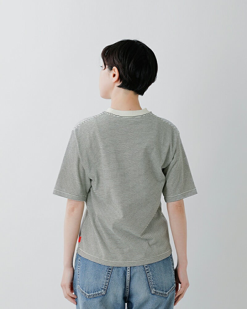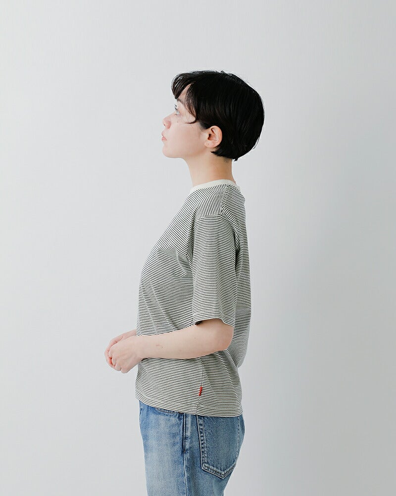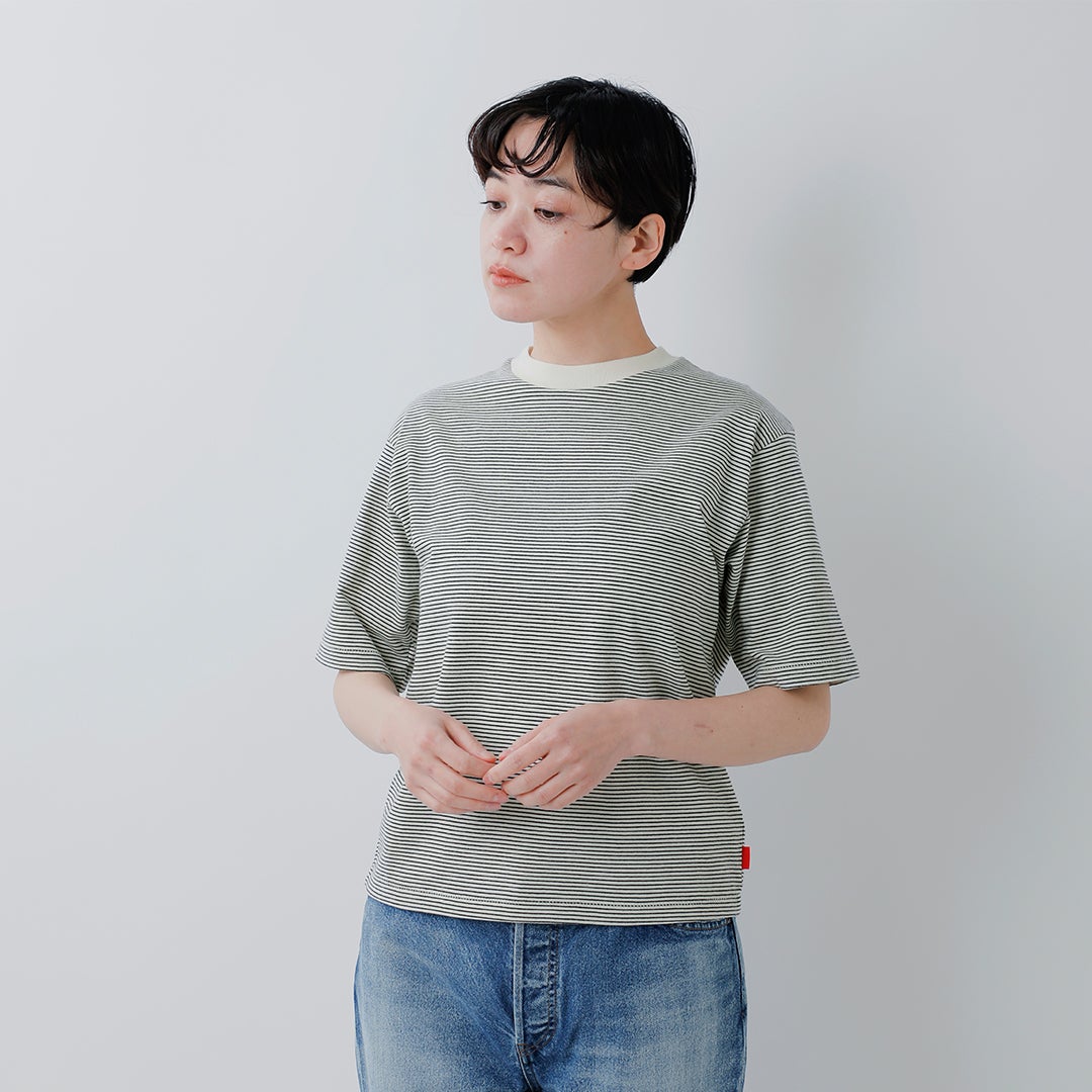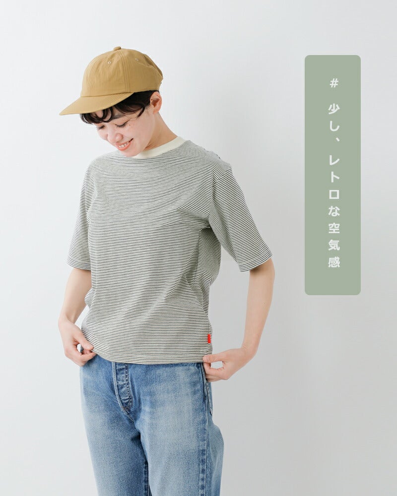 他の画像を見る ヘルスニットHealthknitのモックネックTシャツ。ボーダー半袖で何枚も欲しいカットソー。 【クーポン対象】HOSHII TO DEAU ホシイトデアウ×Healthknit ヘルスニット aranciato別注 Tシャツ ナローボーダー ジャージー モックネック ハーフスリーブ プルオーバー 51019 レディース 2026ss新作 春夏半袖 カットソー シンプル ¥ 5,940 ¥ 5,940 税込 クーポン対象 カートに入れる お気に入りに登録する