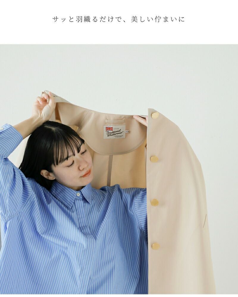 他の画像を見る 撥水性を備えたTCウェザーを使用 英国らしいトラッドなムードのマールトンショートコート 【クーポン対象】Traditional Weatherwear トラディショナルウェザーウェア TCウェザー ロッキー 撥水 コットンライク マールトン ノーカラー ショート コート “MALTON N/C SHORT” l261kgfco0466ro レディース 2026ss新作 春夏 ¥ 39,600 ¥ 39,600 税込 クーポン対象 カートに入れる お気に入りに登録する