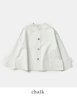 他の画像を見る ネンライクなサラリとした生地感身体のラインを拾いすぎない丸みのあるやわらかいシルエットが女性らしい印象のジャケット 【クーポン対象】un cinq アンサンク クレープ ノーカラー ジャケット u26-10 レディース 2026ss新作 春夏 ¥ 15,180 ¥ 15,180 税込 クーポン対象 カートに入れる お気に入りに登録する