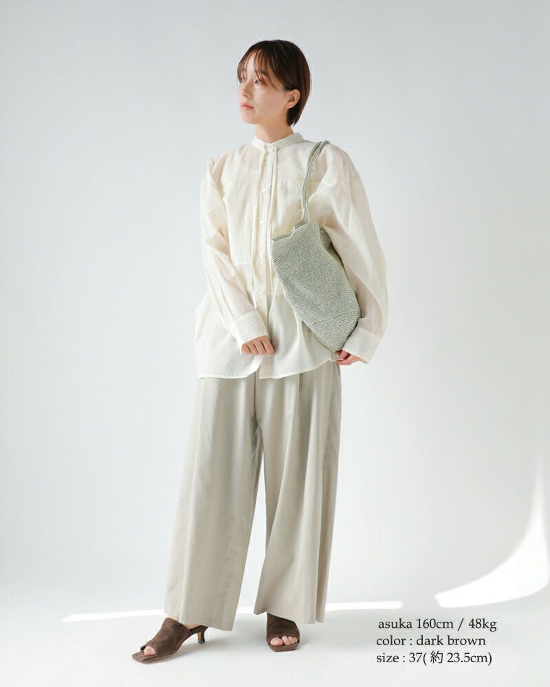 他の画像を見る さらりとしたウォッシュドコットンが爽やかな着心地軽やかでリラクシーなシルエットが美しいイージーパンツ nicholson&nicholson ニコルソンアンドニコルソン ウォッシュドコットン 2タック イージーパンツ “HAKU” haku-w レディース 2026ss新作 春夏 ¥ 23,100 ¥ 23,100 税込 予約 販売期間 2026/02/04 20:00 〜 2026/03/20 23:59 詳細を見る お気に入りに登録する