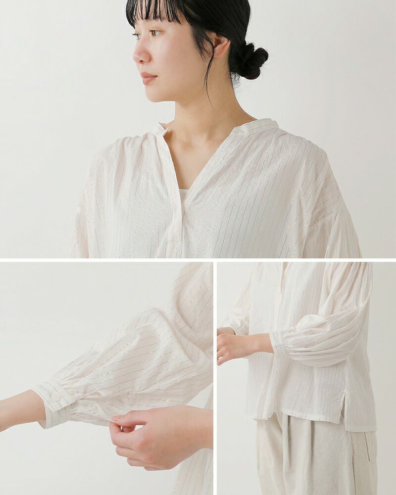 他の画像を見る コットンインドサリーストライプギャザーシャツ薄手やわらかほのかな透け感自然な光沢深めVネック女性らしいナチュラルフェミニン 【クーポン対象】ARTE POVERA アルテポーヴェラ コットン インドサリーストライプ ギャザー シャツ 26sp03 レディース 2026ss新作 春夏 ¥ 20,900 ¥ 20,900 税込 クーポン対象 カートに入れる お気に入りに登録する