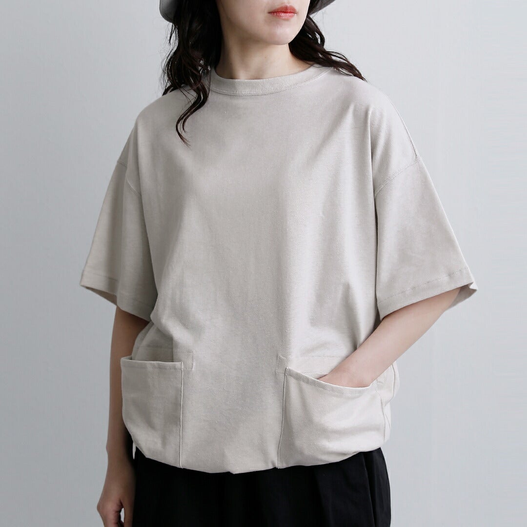 他の画像を見る コットンヘンプ素材ドライな質感裾シャーリングルーズフィットTシャツフロントポケットヘリンボーンテープ主役級存在感リラックスしたシルエット清涼感 【クーポン対象】HAVERSACK ハバーサック コットンヘンプ天竺 ルーズフィット Tシャツ 812625 2026ss新作 春夏 ¥ 16,500 ¥ 16,500 税込 クーポン対象 販売期間 2026/04/22 10:00 〜 カートに入れる お気に入りに登録する
