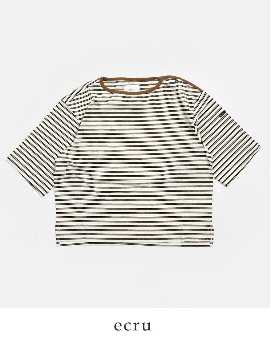 他の画像を見る レトロムード漂うマルチボーダー柄が目を惹くボートネックのハーフスリーブカットソー kha:ki カーキ コットンマルチボーダー ボートネック ハーフスリーブ カットソー “MULTI STRIPED TOP” mil26hcs3481 レディース 2026ss新作 春夏 ¥ 9,790 ¥ 9,790 税込 販売期間 2026/04/20 10:00 〜 カートに入れる お気に入りに登録する
