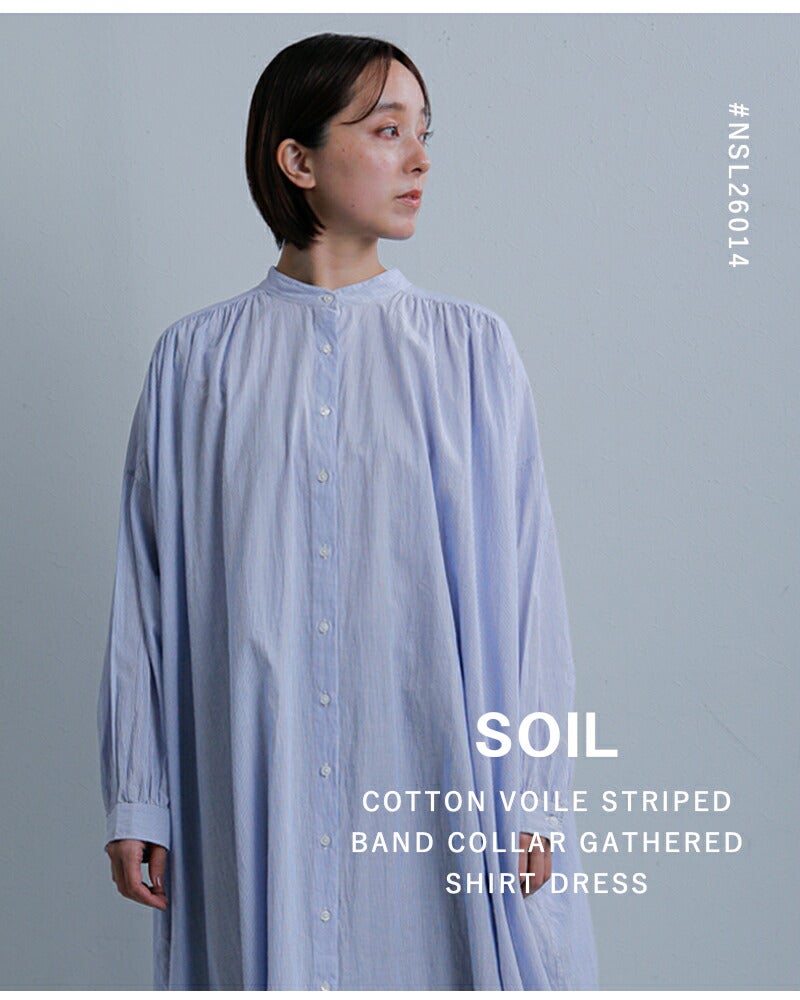 他の画像を見る インド製の上質な生地感が特徴のオーバーサイズストライプシャツワンピース SOIL ソイル コットンボイル ストライプ バンドカラー ギャザー シャツドレス nsl26014 レディース 2026ss新作 春夏 ¥ 19,800 ¥ 19,800 税込 販売期間 2026/04/19 10:00 〜 カートに入れる お気に入りに登録する