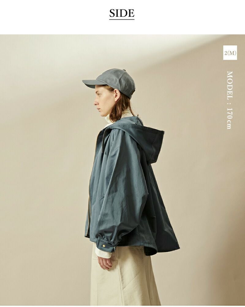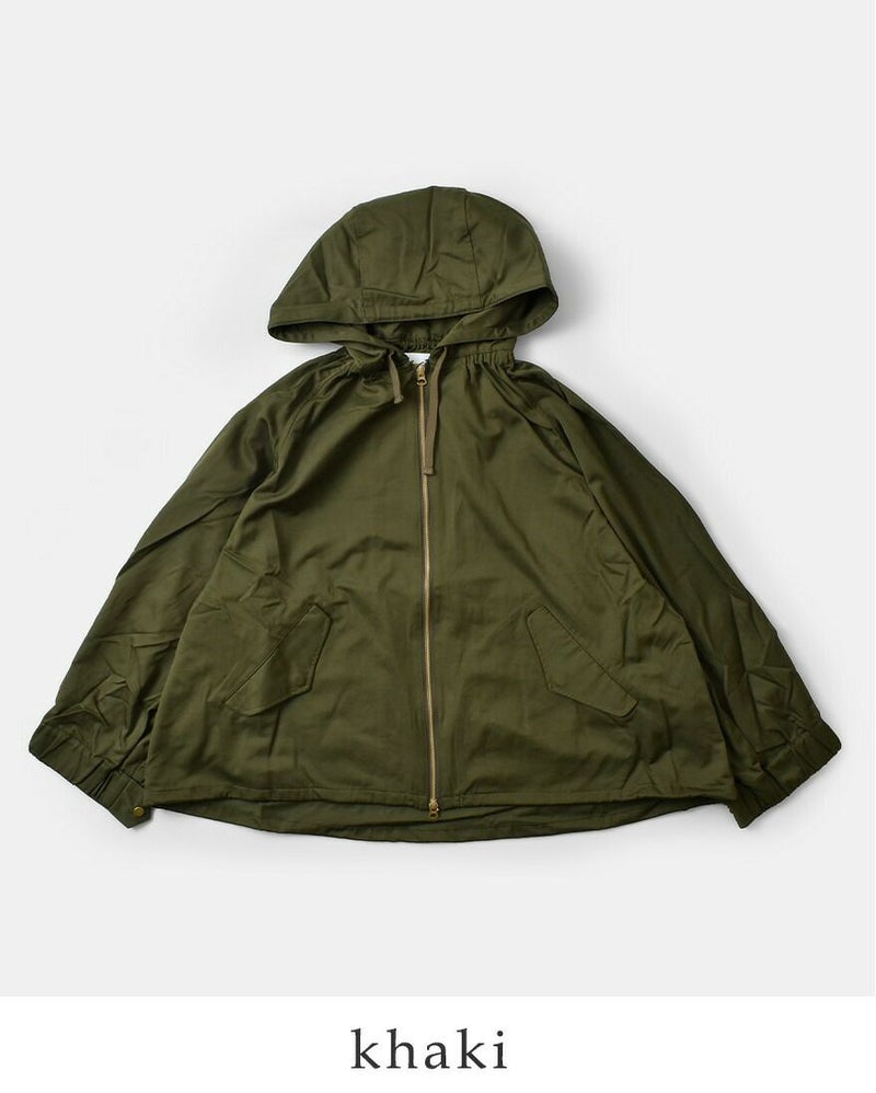kha:ki(カーキ)よりコットン ツイル ワイドスリーブ ジップアップパーカ “WIDE SLEEVE ZIP UP PARKA”のご紹介です。ギャザーやサイズ感を調整できるディティールをふんだんに取り入れることで、立体感のあるボリュームシルエットに仕上げたフードジャケットです。袖口は3段階で調節することができます。ワイドな袖口でルーズに、ボタンで絞って袖口にボリュームを出したり、フォルムの変化を楽しめるアイテムです。柔らかさの残る適度なハリ感のコットン/ナイロン素材を使用しています。