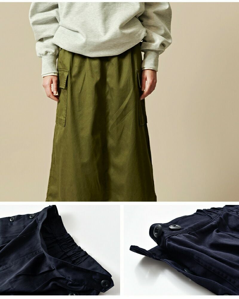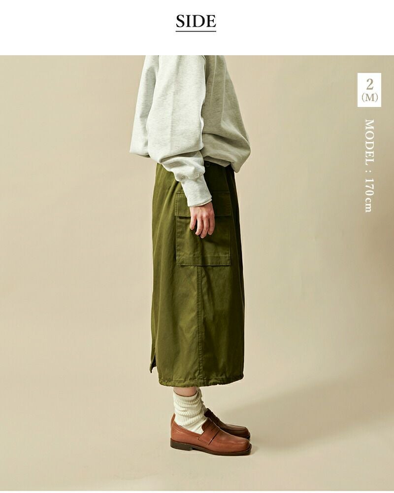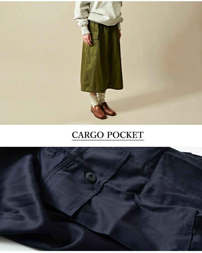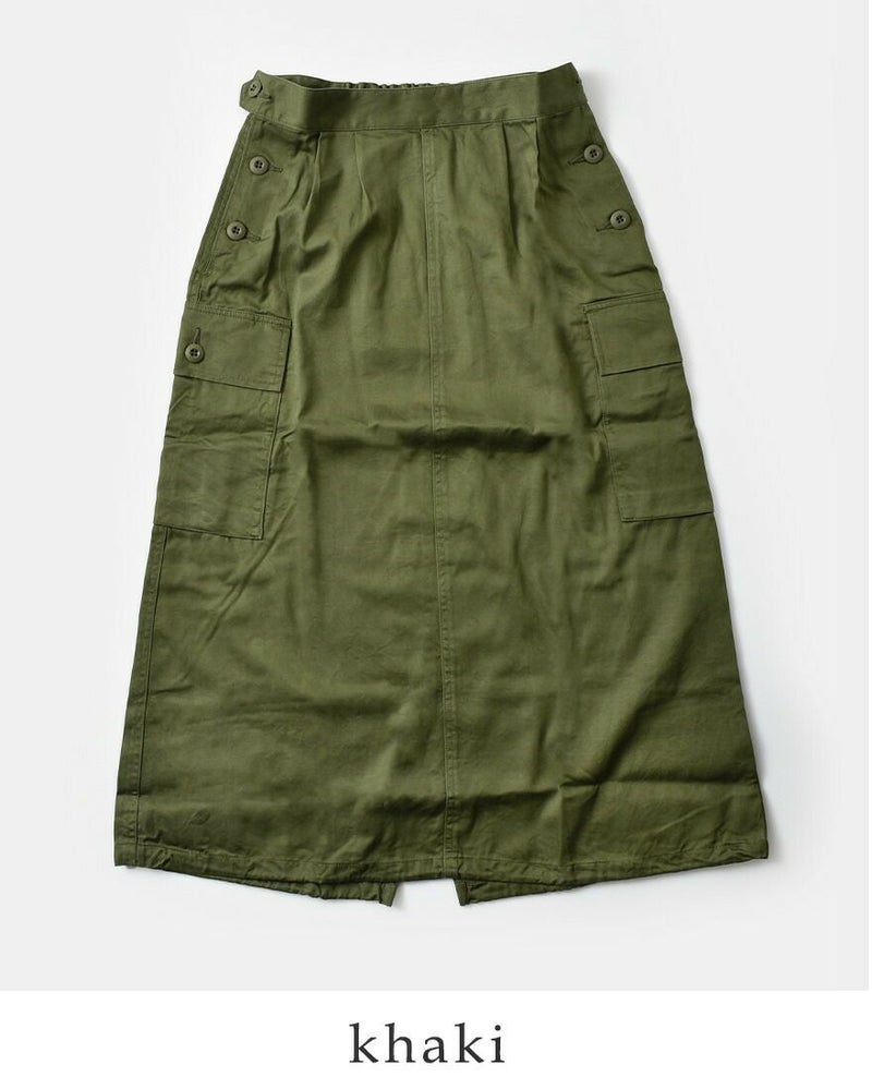 【送料無料】柔らかな落ち感 が 特徴的で クラシカルな印象 の ミリタリー カーゴ スカート【再入荷】 kha:ki カーキ