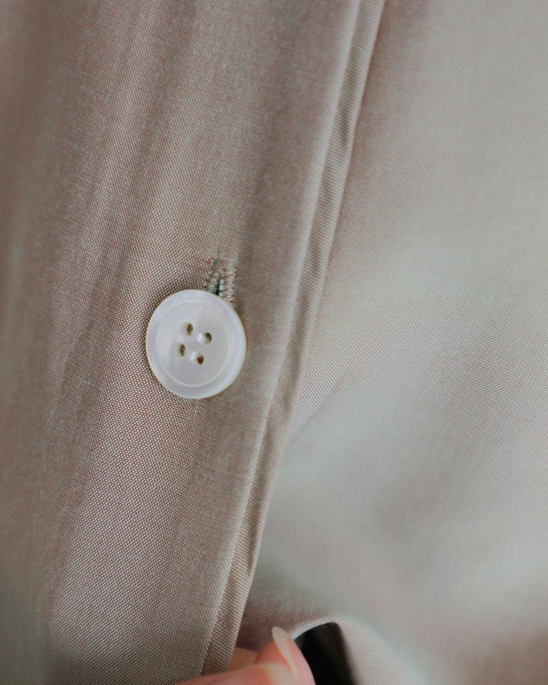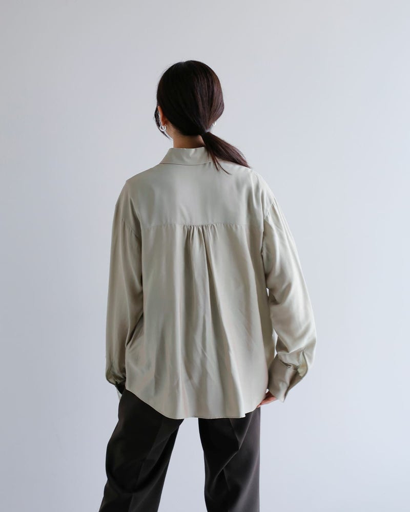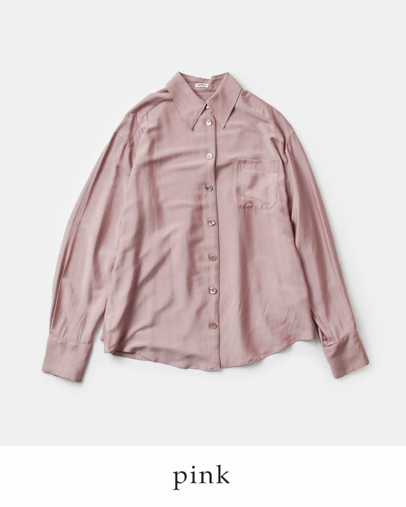 ヴィンテージの佇まいを現代にアップデートした一着。縦横で色味が異なる糸を使用し、シルクのような美しい光沢感と柔らかく落ちるドレープ感を実現しました。トルコのACAR社で製造された上質なレーヨンに、家庭でのケアを可能にするため横糸にポリエステルを使用し、防シワ性も兼ね備えています。サイズ感はメンズシャツらしいゆとりを持たせつつ、大きめのシェルボタンがアクセント。パターンには1980年代のスリーピングシャツのエッセンスを取り入れ、さらりと羽織るだけでこなれ感を演出します。デイリーにも、特別な日にも活躍する、大人のための上質なシャツです。