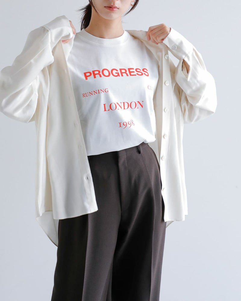 ゆったりとしたオーバーサイズシルエットながら落ち感があり、すっきりと縦に流れるライン。