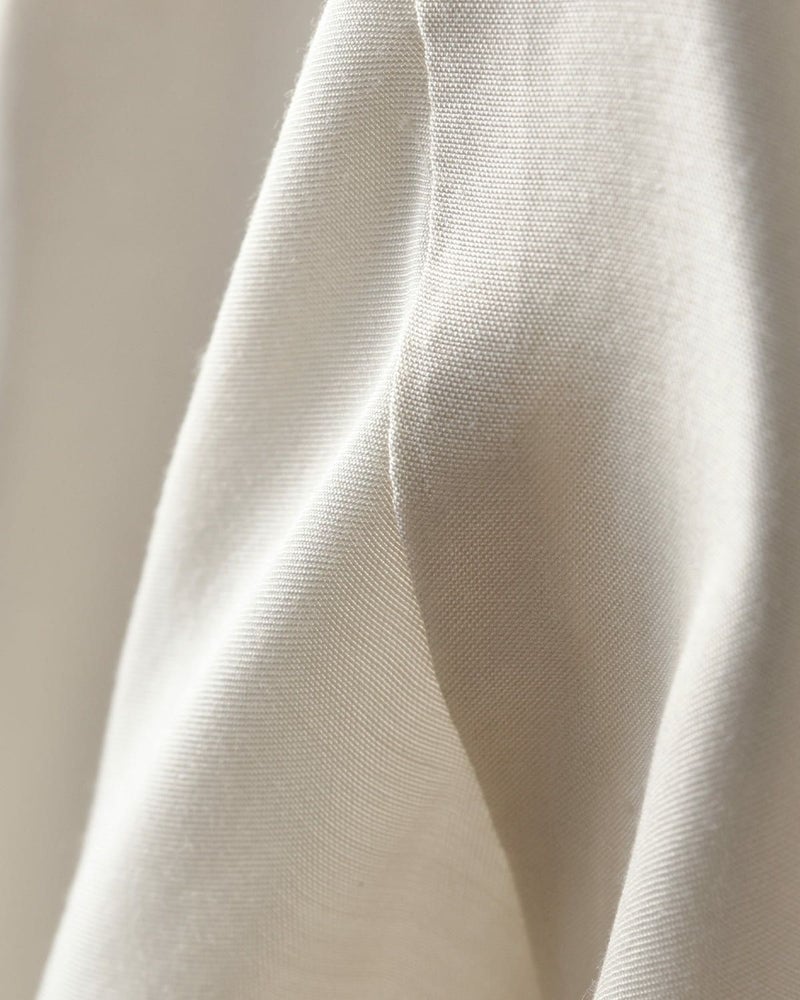 縦横で微妙に異なる色に染めた糸を使用し、シルクのような光沢感とドレープ感を持つレーヨンをベースに、横糸にポリエステルを使用することで家庭洗濯を可能にし、防シワ性も備えた実用的かつ高級感のある生地です。トルコのACAR社で製造された信頼性の高い生地を使用しています。