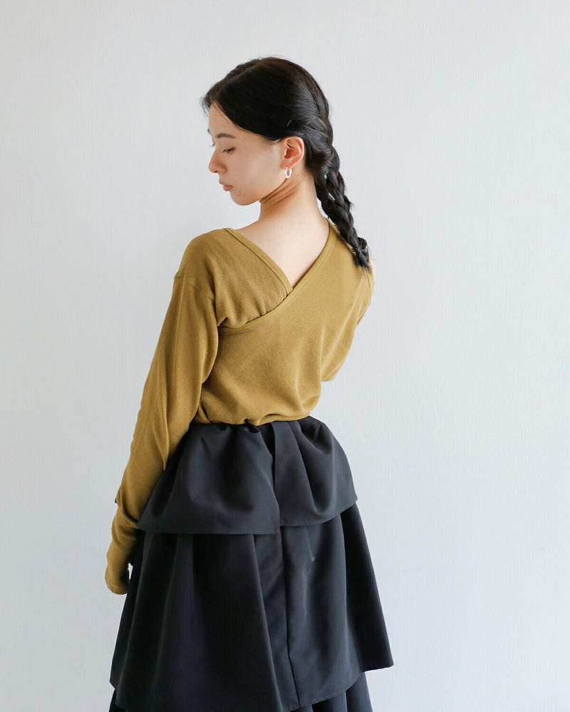 首を通す位置で2つのスタイルを楽しむことができる2wayトップス。