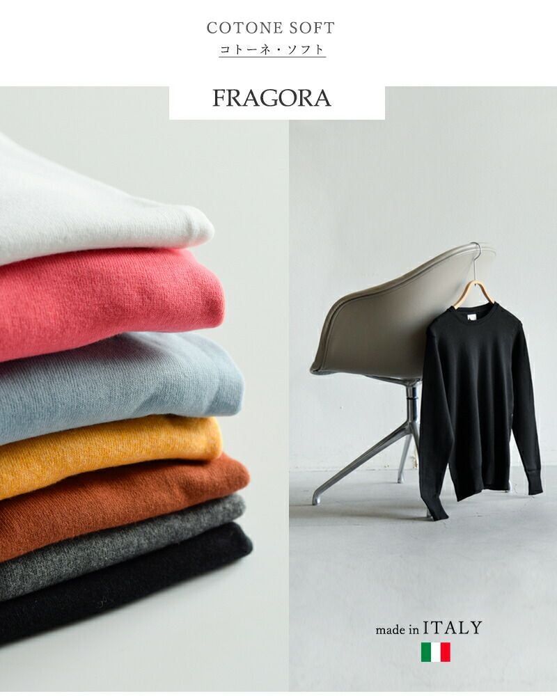イタリアの老舗アンダーウェアブランドGICIPI(ジチピ)よりコトーネソフト コットン クルーネック プルオーバー “FRAGORA” のご紹介です。袖口や裾のリブがハイゲージニットのような上品さのあるコットン100%のクルーネックニット。ベーシックでシンプルなデザインなのでジャケットやカーディガンとのコーディネート等、デイリーに幅広く使えます。フィット感のあるサイズ感からゆったりとしたサイズ感まで揃った4サイズ展開なので、お好みのサイズ感でお楽しみいただけます。
