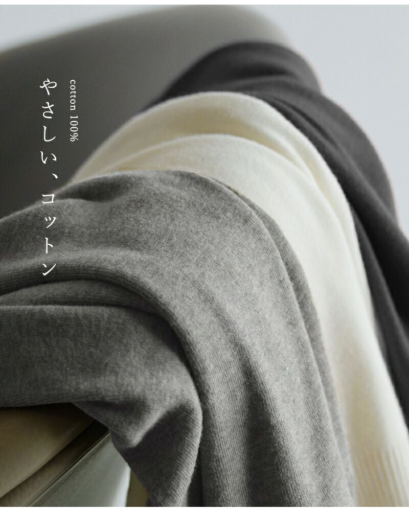 ■cotton 100% ジチピオリジナルのコットンニット”コトーネ・ソフト”を使用。コットン100%とは思えない柔らかな肌触りが特徴です。伸縮性もたっぷりとあり、動きやすくて快適です。軽くて優しい素材感が、一度着用すると病みつきになるような心地さ。生産工程で水通し・乾燥を行っているので製品の縮率がありません。ご家庭で気軽にお洗濯できる手軽さも魅力のひとつです。