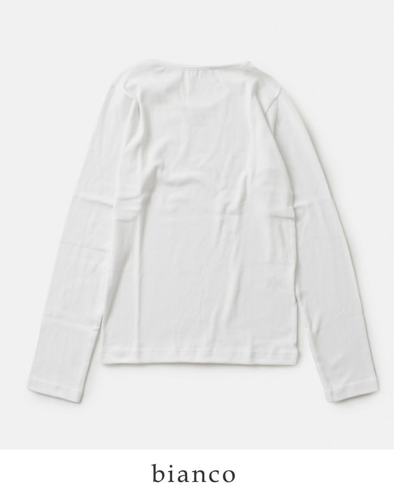 とてもソフトなジチピオリジナルの「コスティーナコットン」を使用。程よくフィットするコンパクトめなシルエットですが、締め付け感なく、1枚着でもカーディガンやジャケットのインナーとしても活躍します。