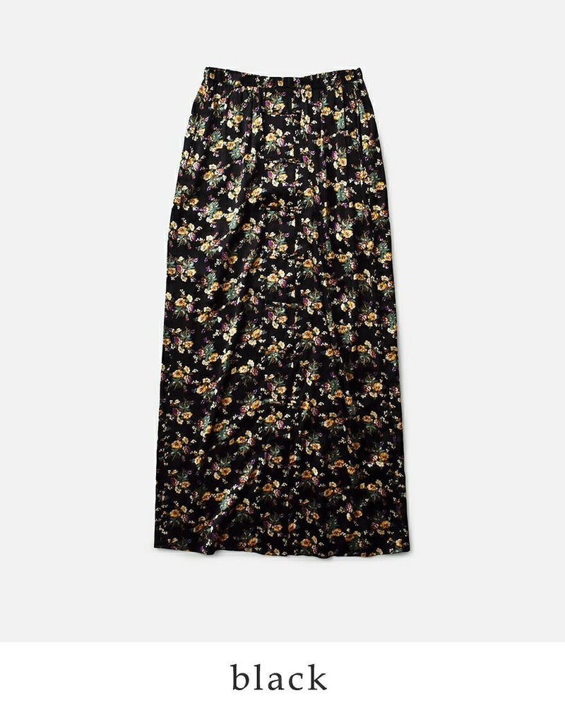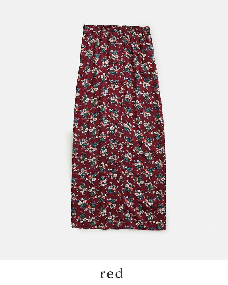 チャイナボタンがアクセントの花柄サテンスカート