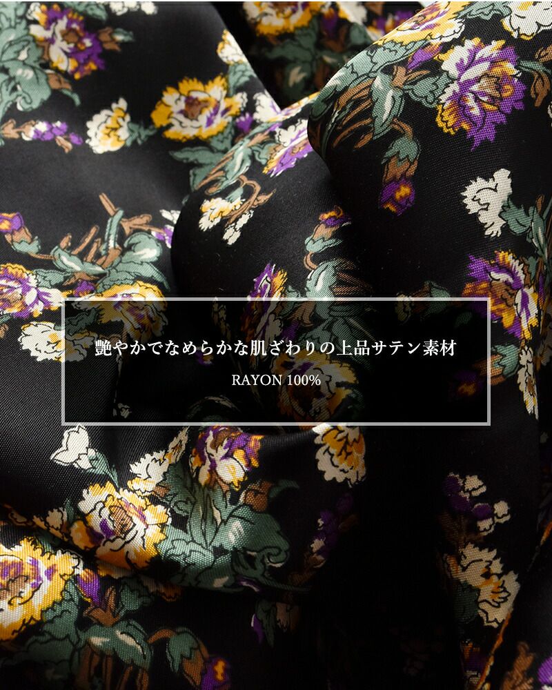 ・レーヨン 100% しっとりとした質感と自然なツヤ感が魅力のサテン素材。優雅なドレープで女性らしさを演出します。