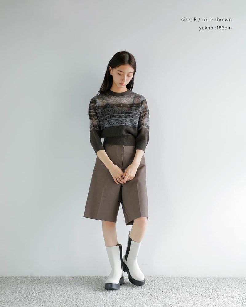 ウールの暖かさとモヘアのやわらかな質感を掛け合わせた生地。ふんわりと軽やかな着心地に加え、ほんのり透けるシアー感が抜け感を演出します。