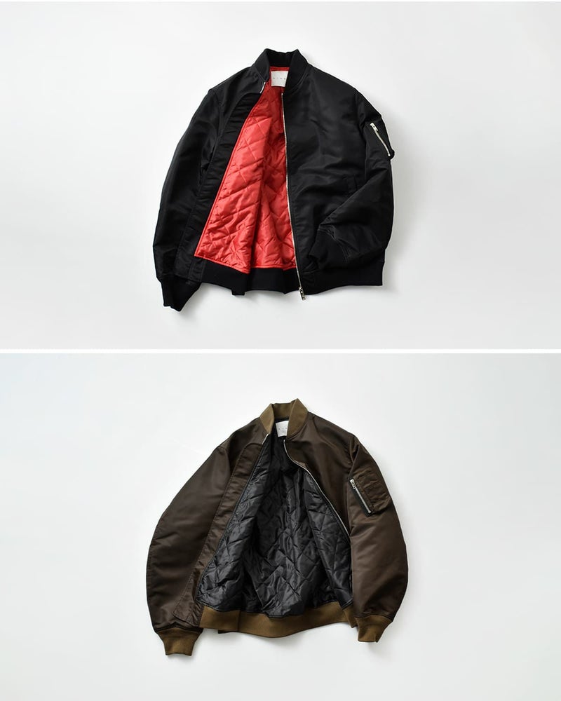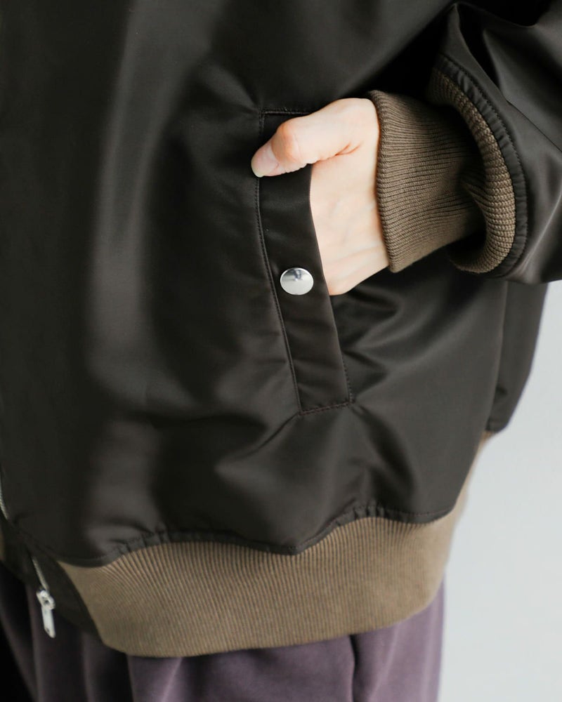 リモンタナイロンの上品なツヤとMA-1らしいディテールが融合した、甘さ控えめな大人のミリタリースタイルです。
