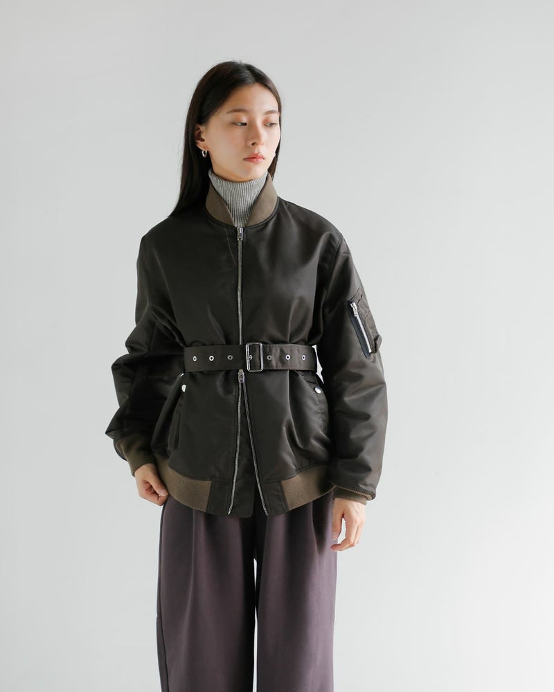 LIMONTA社の上質なナイロンツイルを使用した、ウエストベルト付きのフライトジャケット