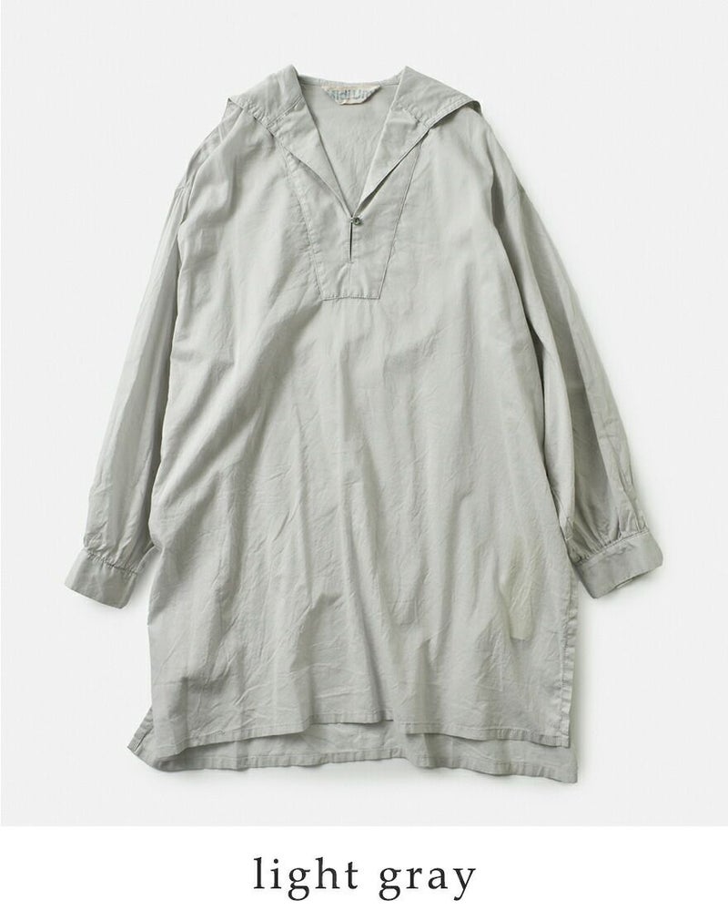 薄手の80ローンを使用したシースルーセーラーカラーチュニックです。8~9月の日差しの強い時期の日よけにもオススメ。中にタートルネックを着用いただき寒くなる時期にも素敵に着こなしていただける1枚です。ヴィンテージのスモッグのような雰囲気が印象的。後ろはセーラー、サイドは深めのスリットが入りボトムとの重ね着もしやすいデザインです。優しい色合いを取り入れているので季節によって着こなしを楽しんでいただけるチュニックです。