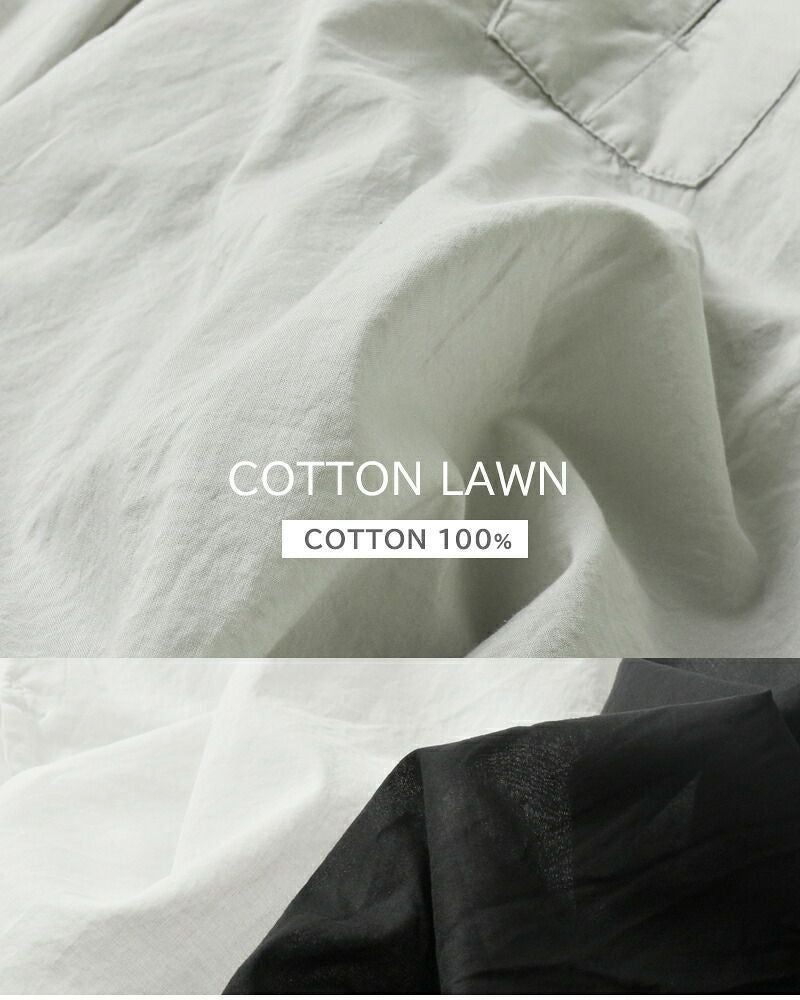 薄手の80ローンを使用。上品な透け感があり、ふんわりと柔らかな肌触りです。8~9月の日差しの強い時期の日よけにもオススメ。コットン100%で通気性が良く、さらりと爽やかに着ていただけます。