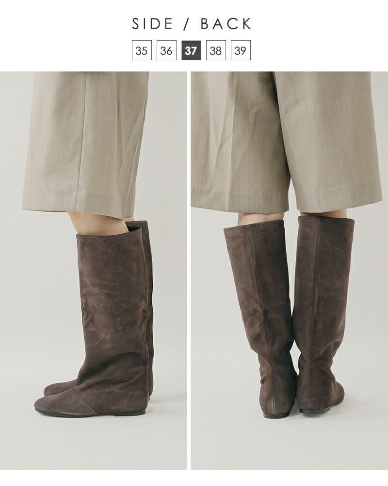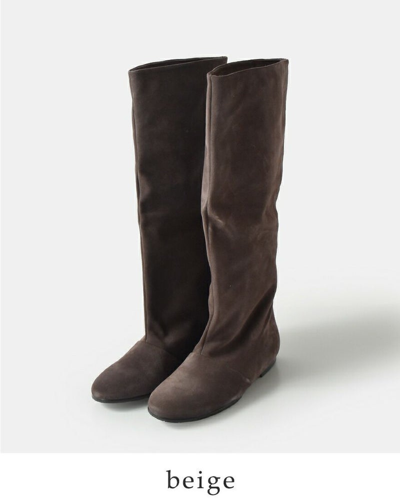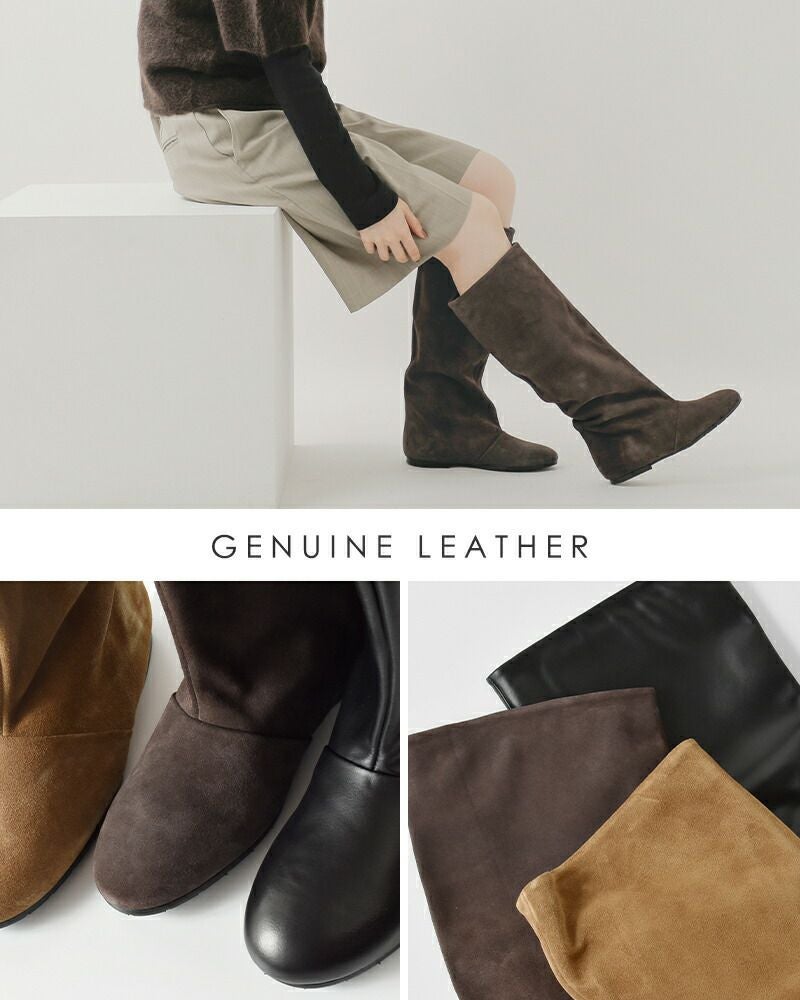 脚のラインを美しく見せるロングブーツ。 すっきりとしたフォルムでスタイリングを選ばず、シンプルながらも存在感を放ちます。