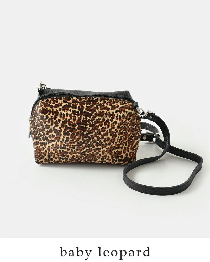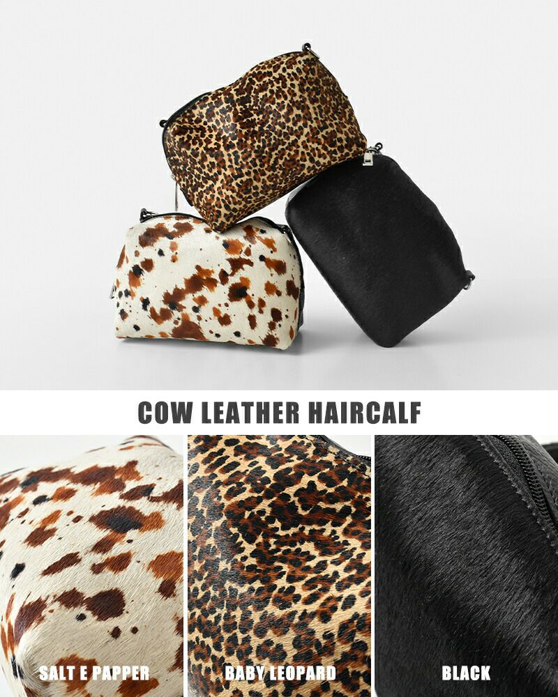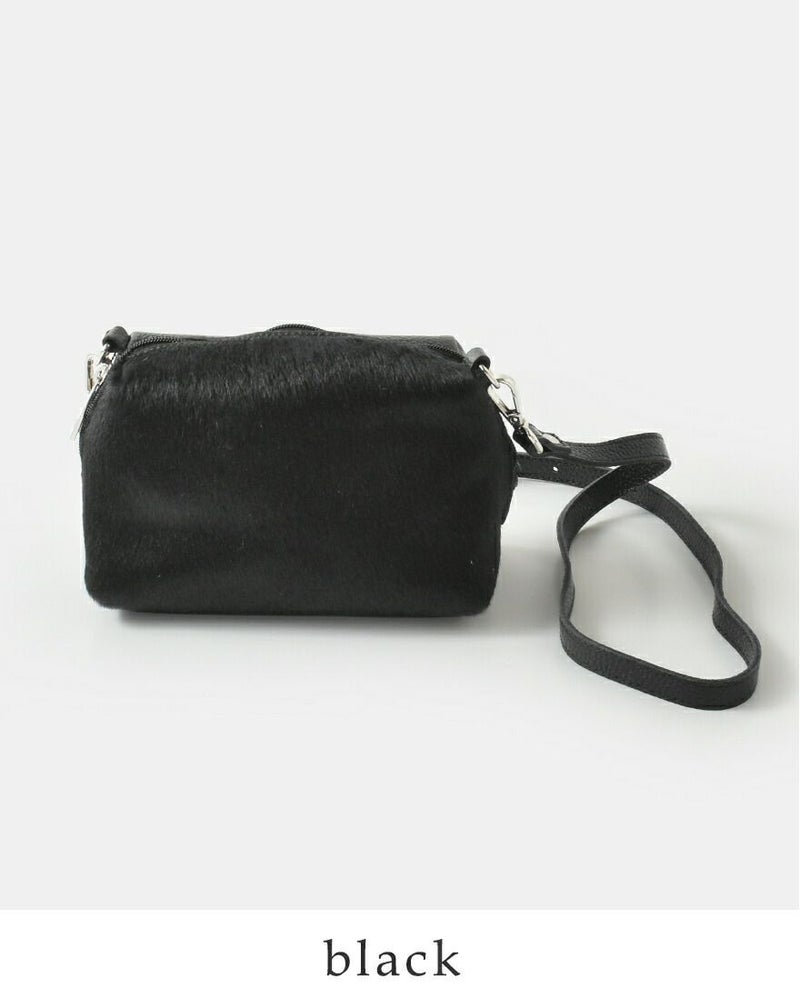 丸みのあるころんとしたフォルムに、ハラコのナチュラルな模様が映えるデザインのカウレザー ハラコ ショルダー バッグ。