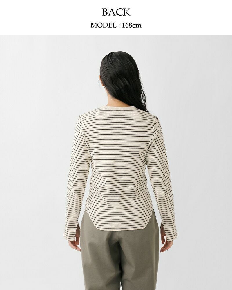 袖口のさりげないスリットと丸みのある裾ラインが、シンプルながらもスタイリングに抜け感をプラス。