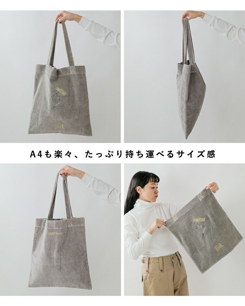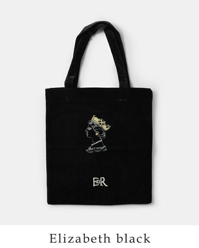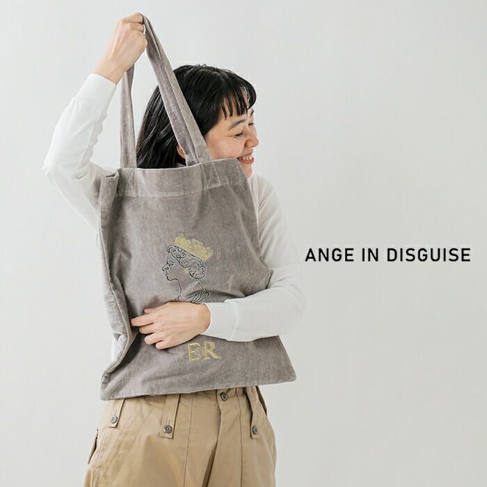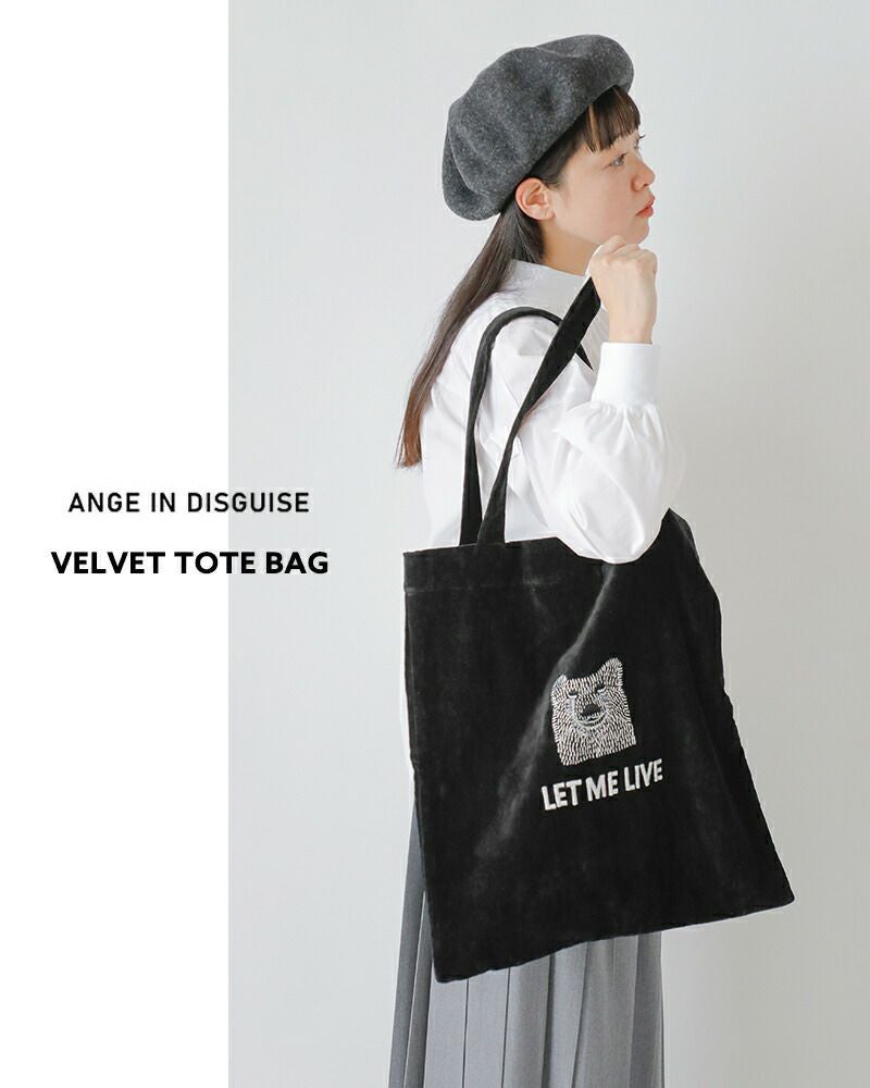 ANGE IN DISGUISE(アンジ イン ディスガイズ)よりベルベット トートバッグのご紹介です。しっとりとした手ざわりが魅力のベルベット素材に、インド・ヒマラヤの麓にある刺繍工房で丁寧に施された繊細な刺繍。キャッチーなモチーフがさりげなく日常に個性を添えるトートバッグです。A4サイズもすっぽり入る大きめサイズで、サブバッグやお買い物バッグとしても活躍。しっかりとした持ち手で肩掛けもらくらく。豊富なカラーバリエーションは、ついコレクションしたくなる楽しさも。